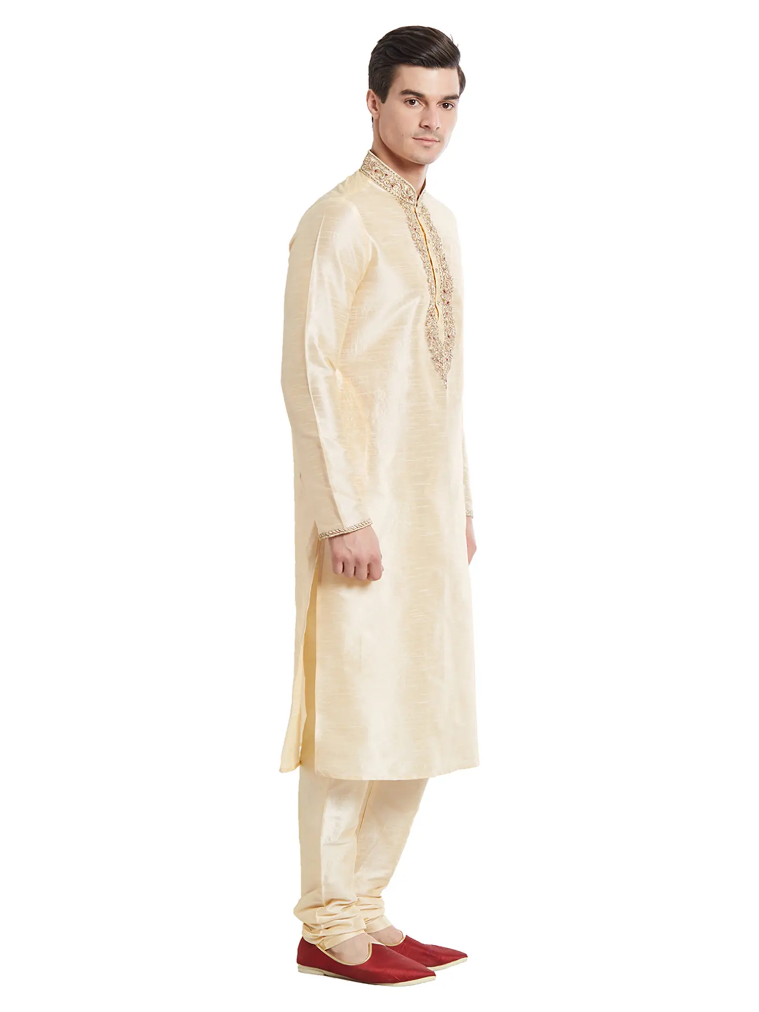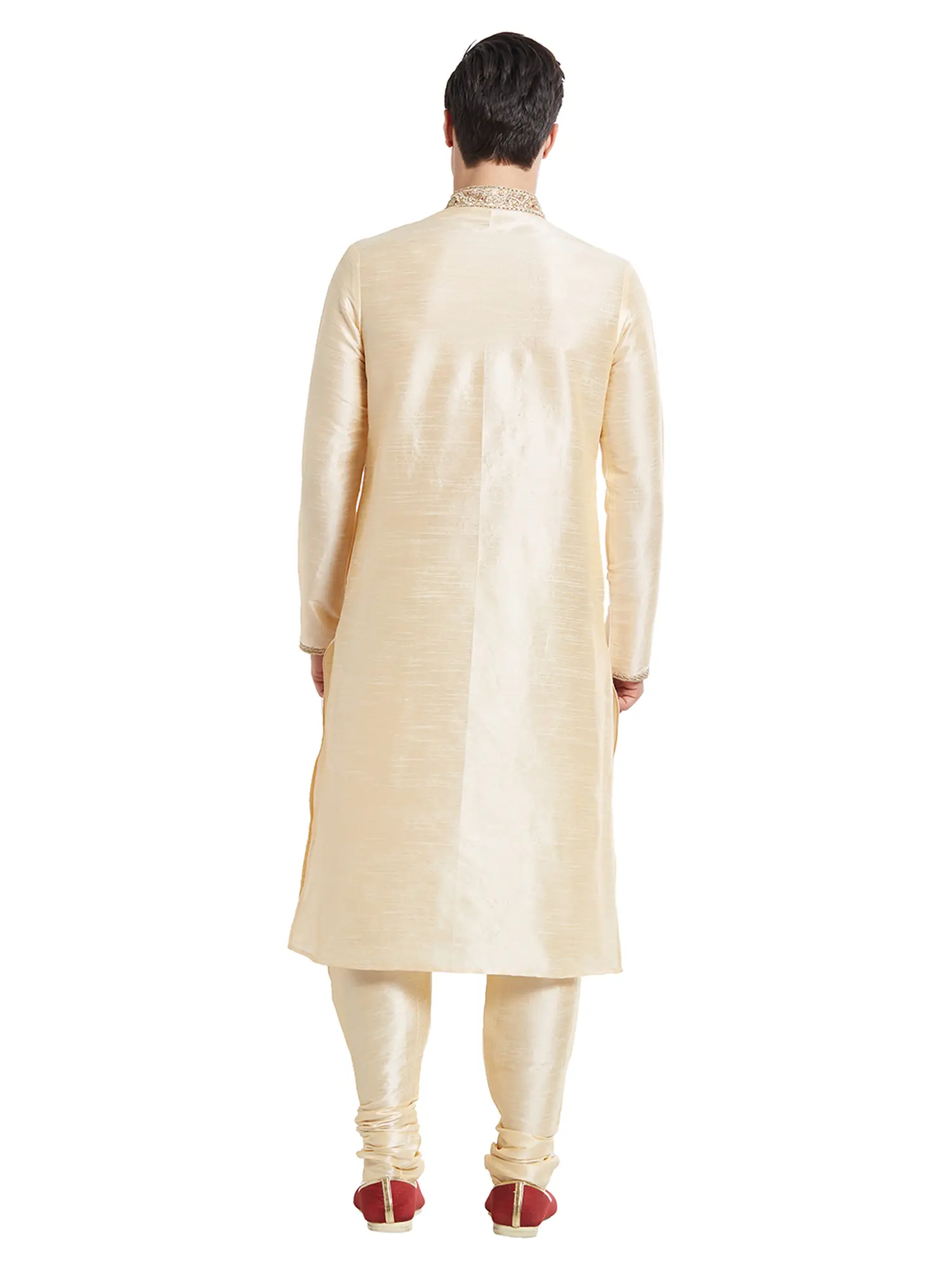 Wedding Kurta Pajama Set with Embroidered Collar and Jacquard Woven Paan Leaves