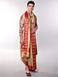 Traditional Temple Border Dhoti & Shoulder Cloth Set - Art Silk Ikat
