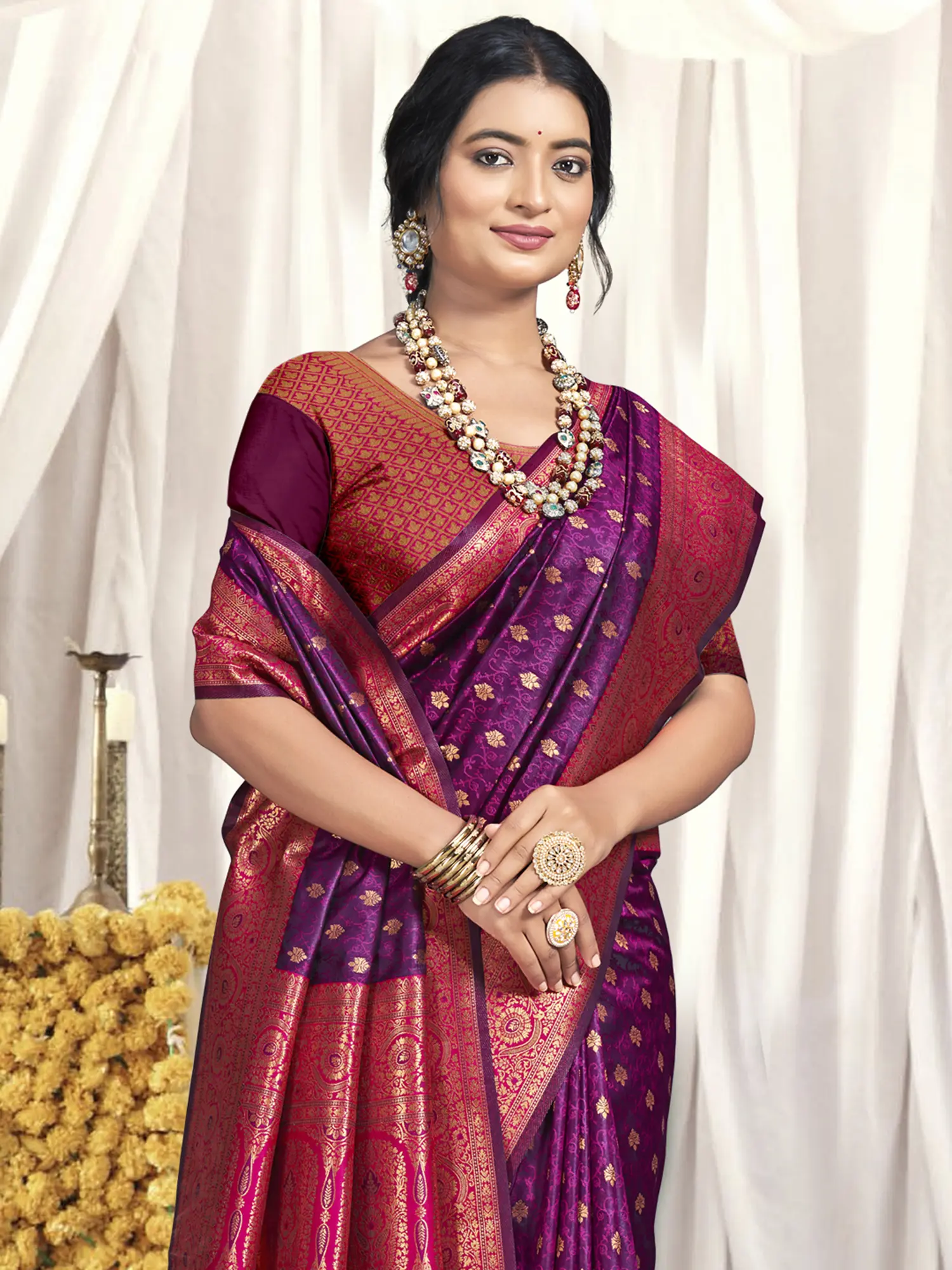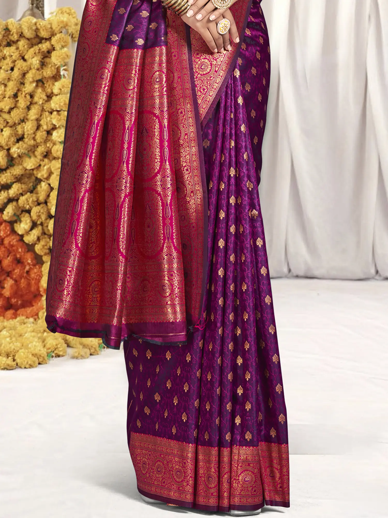 Party Wear Vichitra Silk Saree With Gold Zari Work On Border And Motifs All-Over