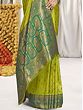This exquisite silk saree is a masterpiece of traditional craftsmanship, designed to make you the center of attention at any special occasion. The vibrant lime green body is adorned with a captivating pallu and intricate detailing, creating a look that is both timeless and contemporary. The rich color and luxurious texture of the silk create a drape that flows effortlessly, enhancing your natural grace. This saree is perfect for weddings, festivities, or any event where you want to make a statement.