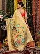 Transparent-Yellow Cotton Saree with Paisley Print and Zari Border from Telangana