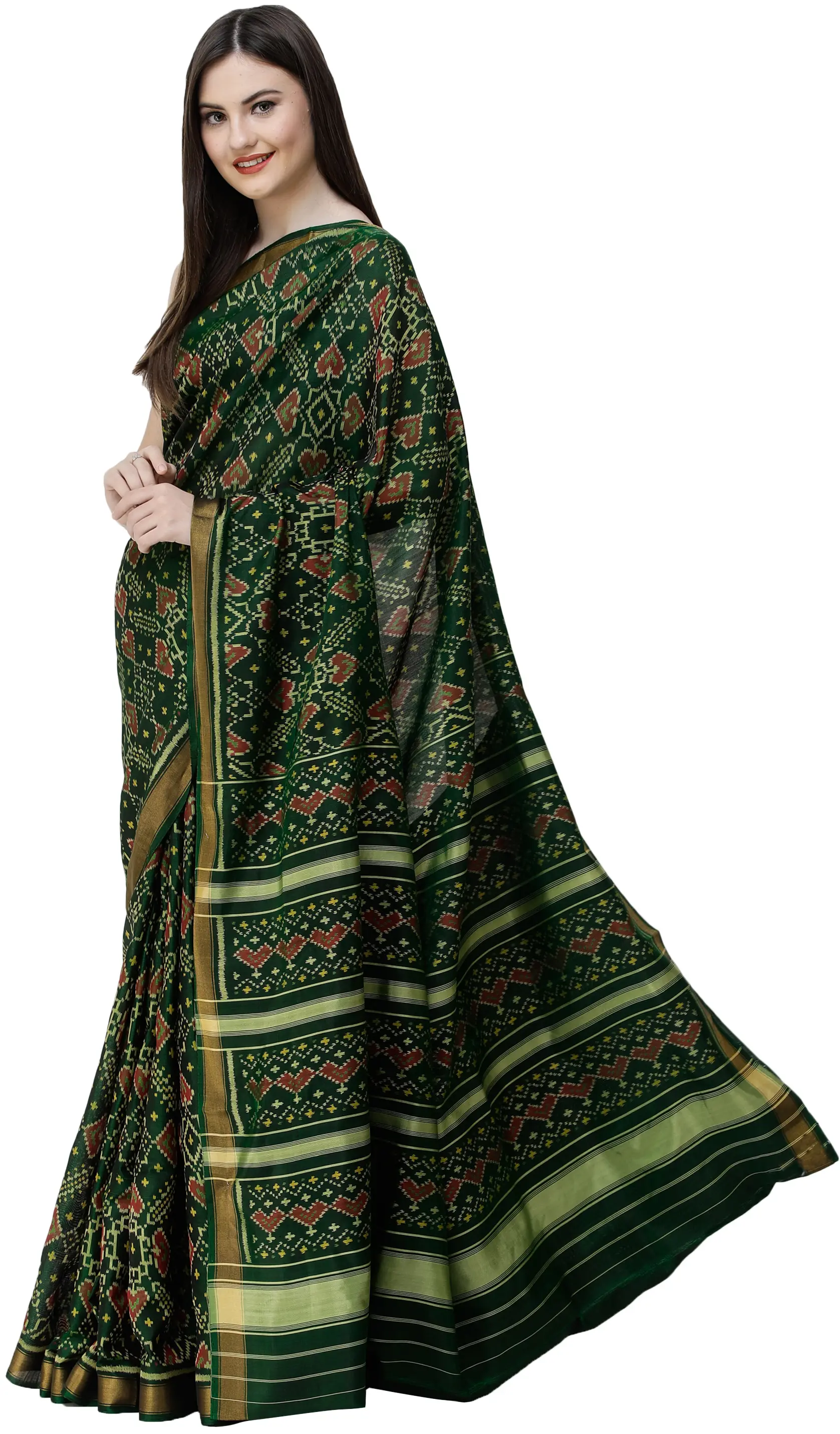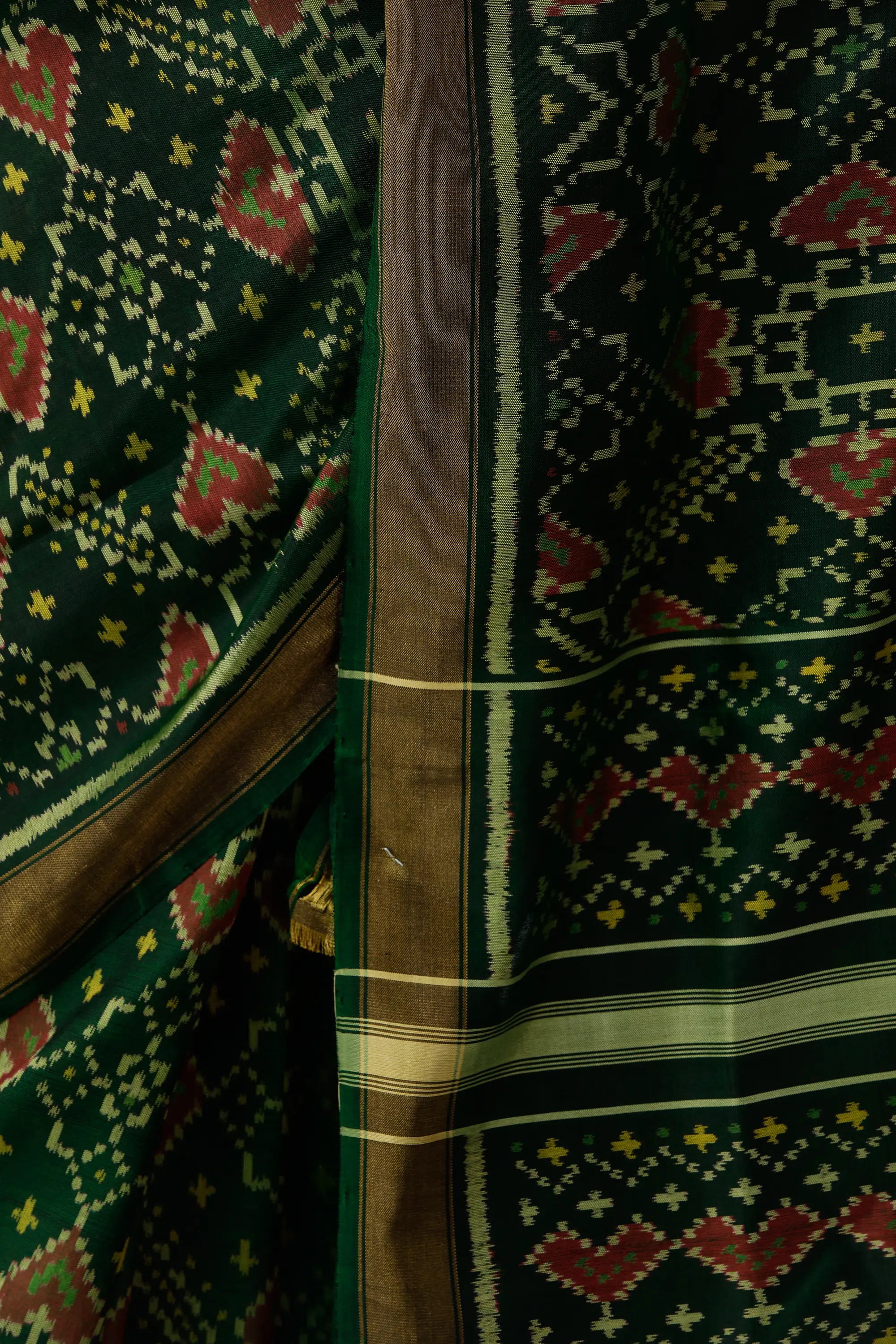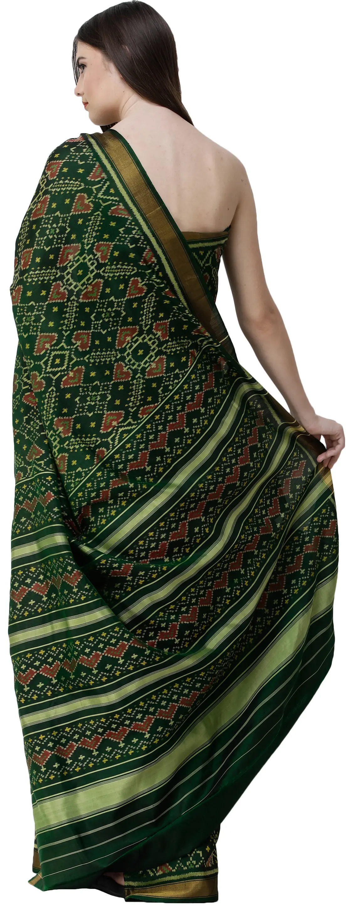 Trekking-Green Handloom Paan Patola Sari from Patan with Ikat Weave