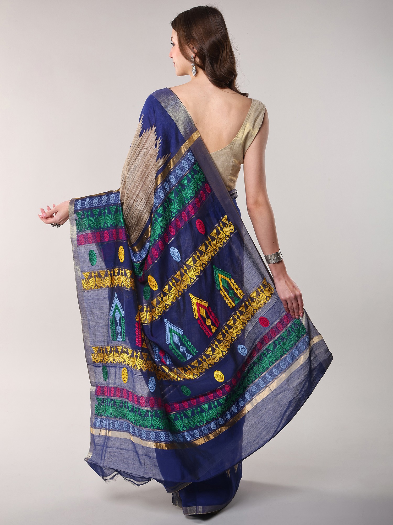 Embrace the confluence of traditional artistry and contemporary elegance with this exceptional handloom creation. Its rich textile tapestry offers a unique statement piece that effortlessly transitions from formal occasions to sophisticated everyday wear.