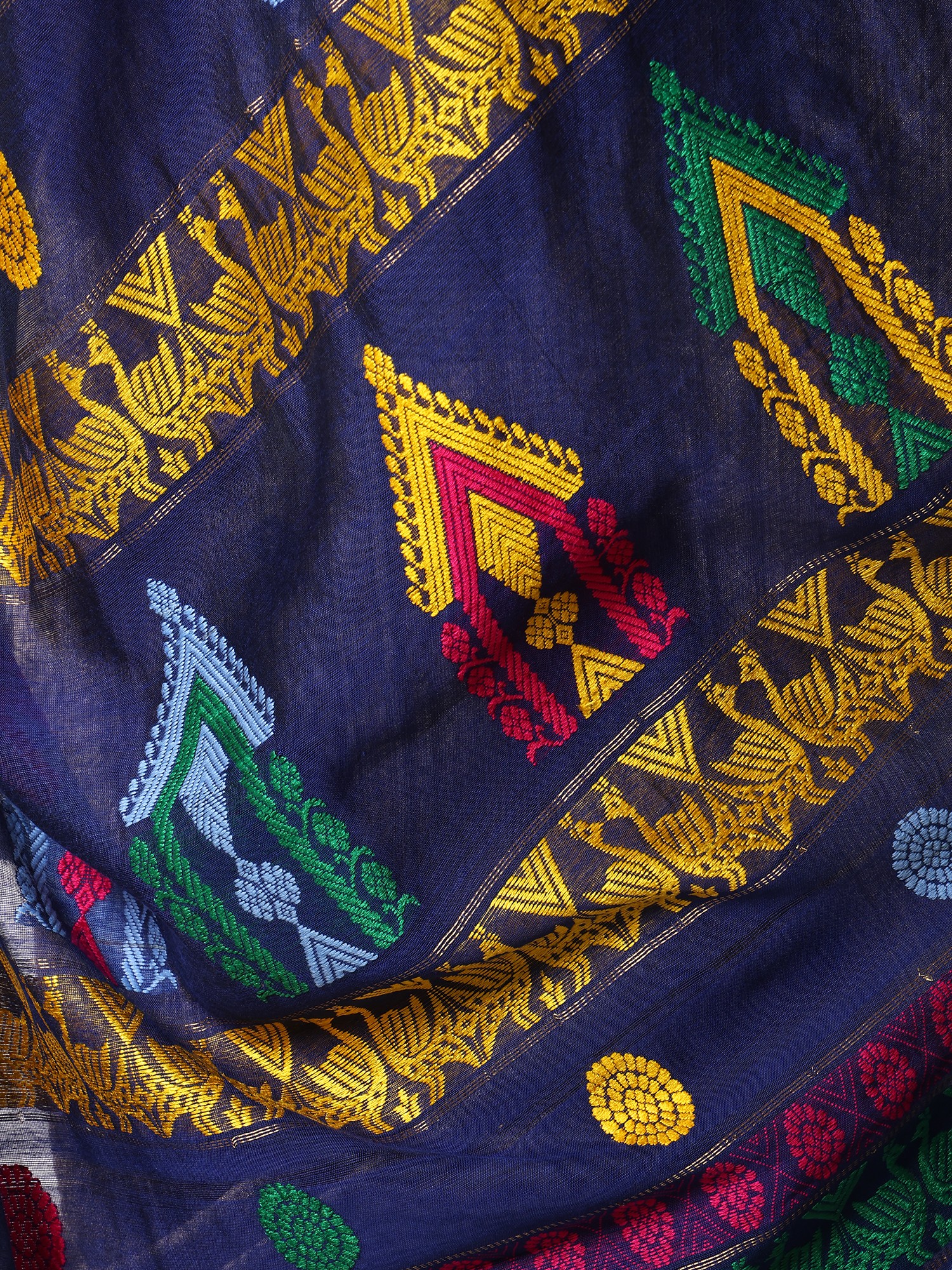 Experience the dedication of skilled artisans in every thread of this handwoven masterpiece. Crafted from a luxurious blend of jute and cotton silk, it showcases impeccable construction and a subtle, natural sheen. The tactile quality speaks to generations of weaving expertise, ensuring a garment that feels as exquisite as it looks.