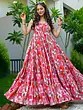 Vivid Auburn Airtex Chinon Heavy Digital Printed Fully Flared Anarkali Style Festival Wear Gown With Dupatta
