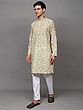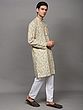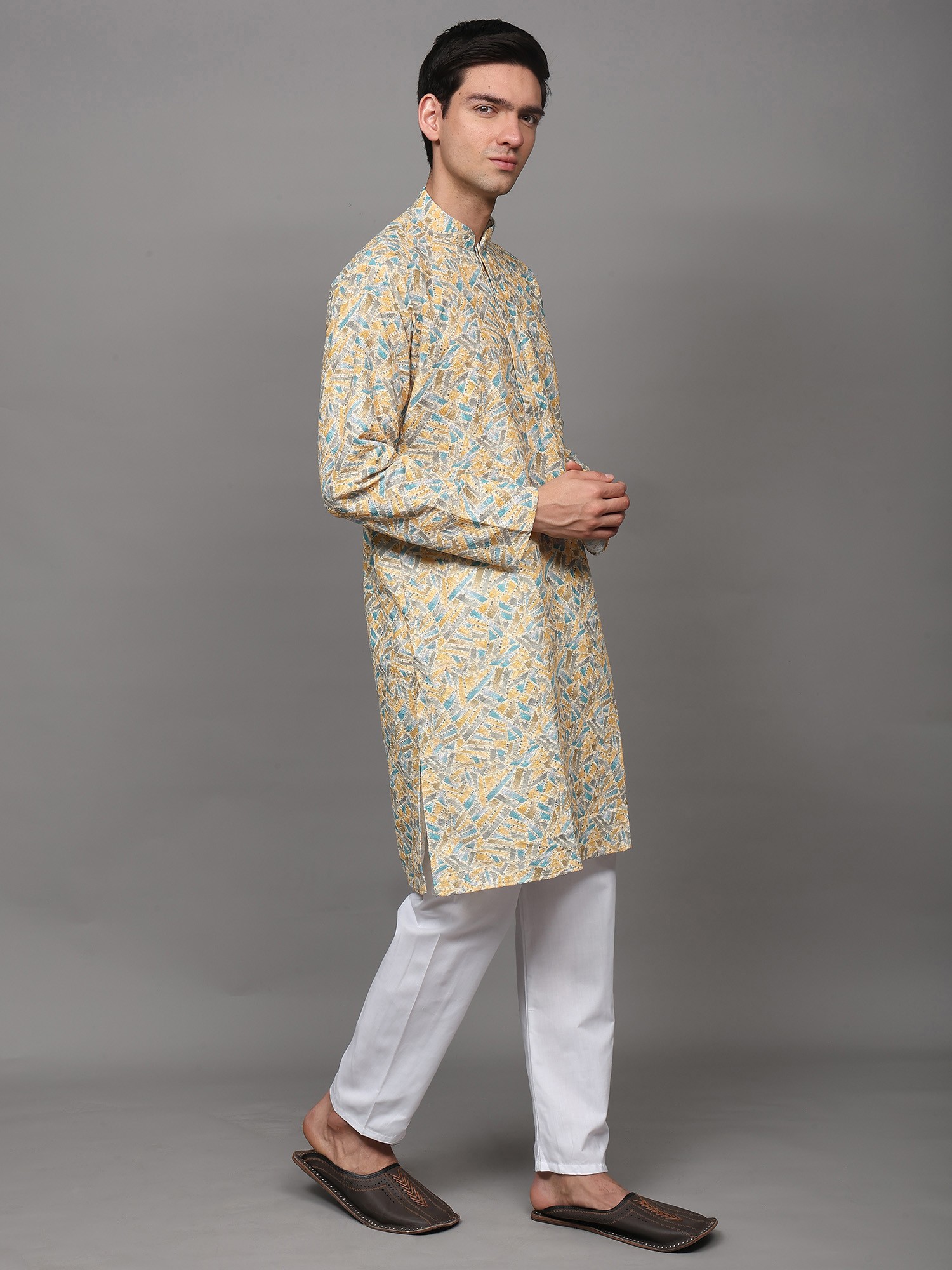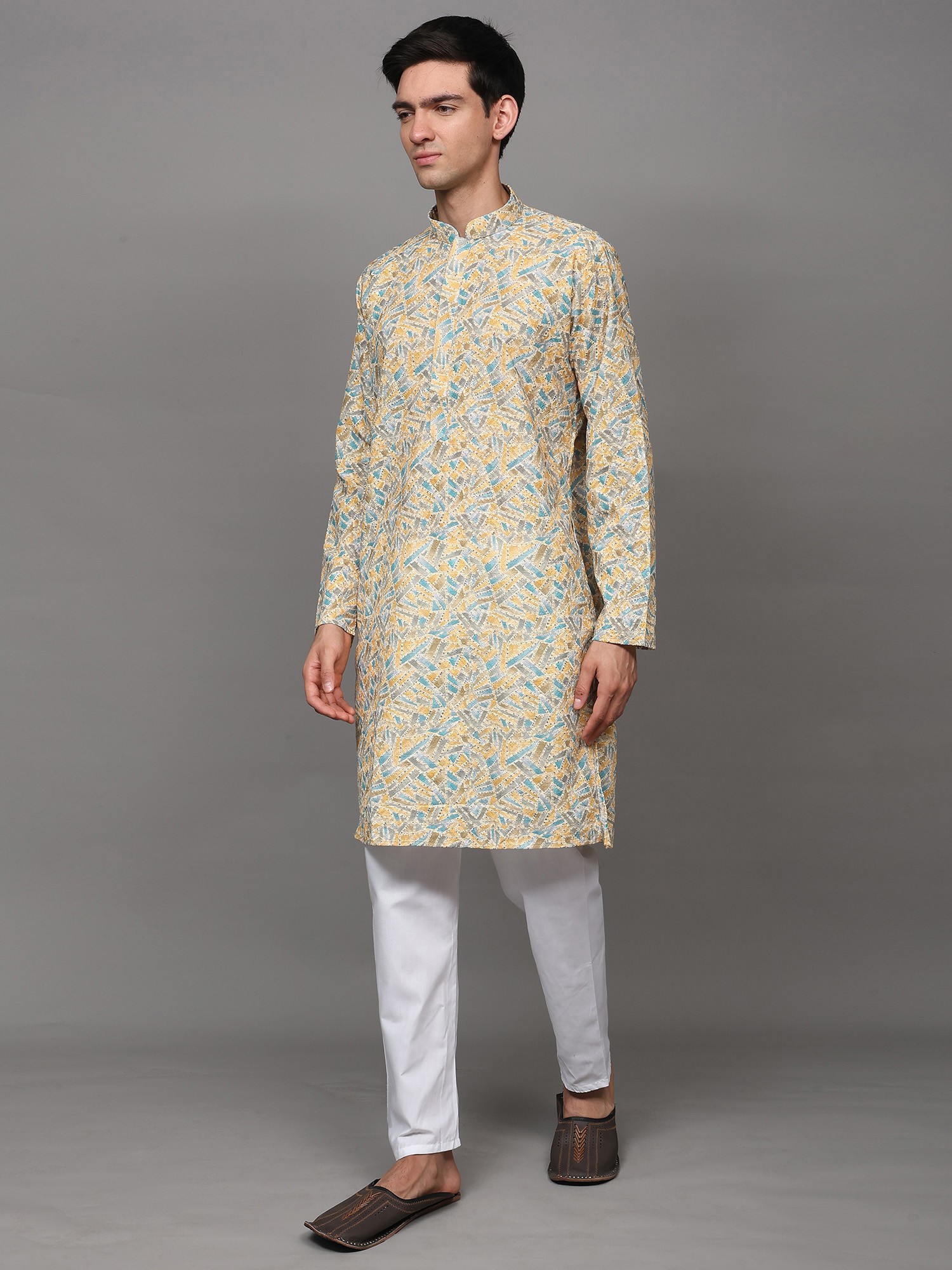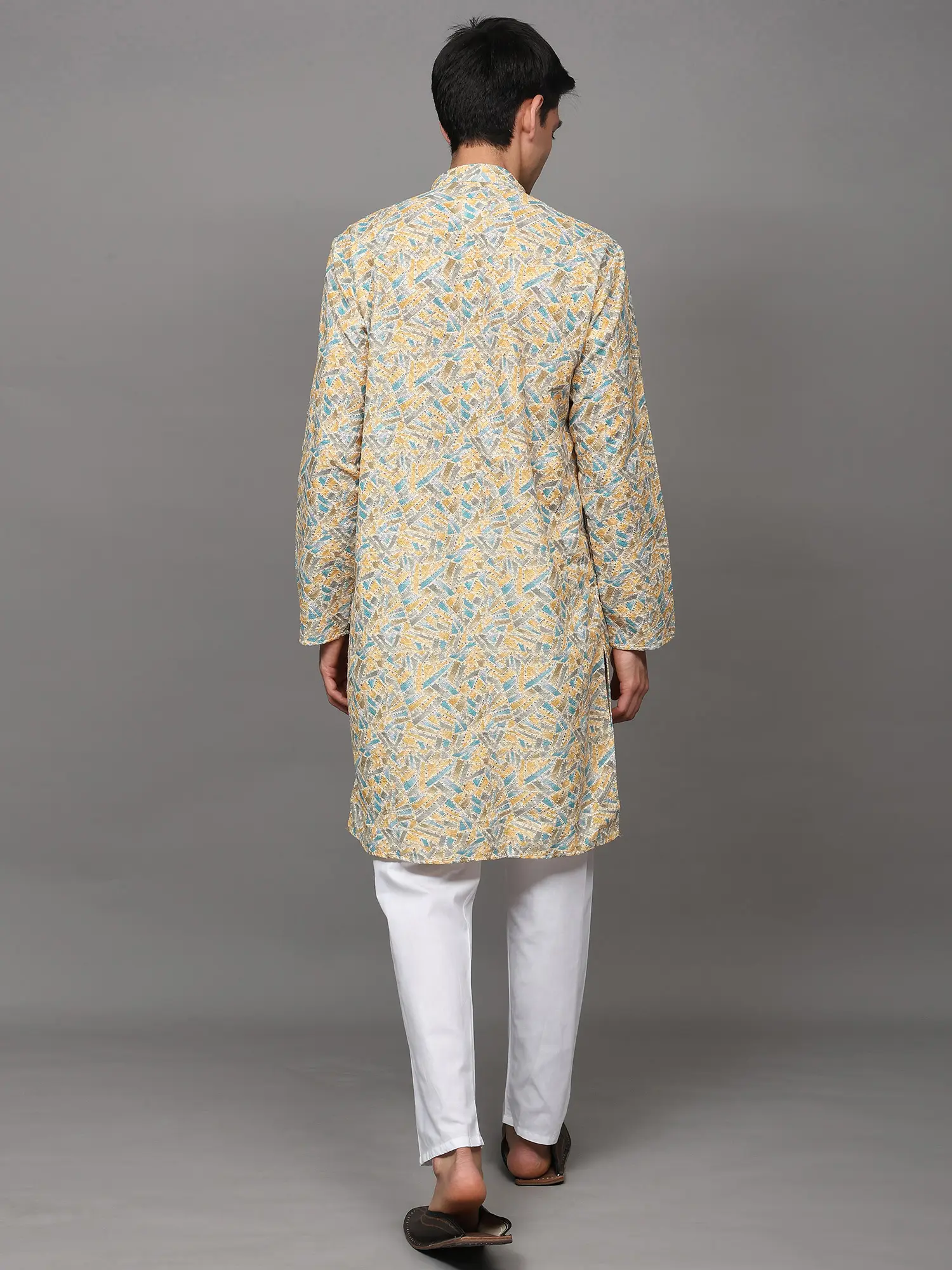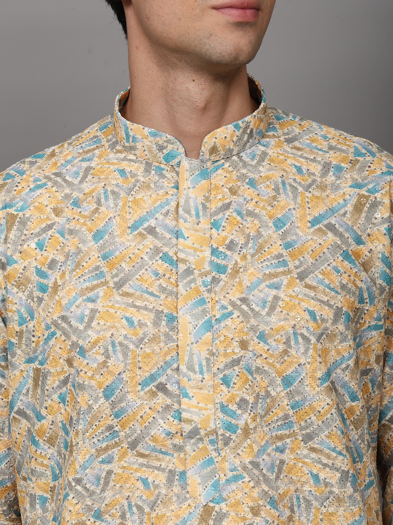 Printed Multi-Colored Kurta Pajama Set with Embroidery in Self-Colored Thread
