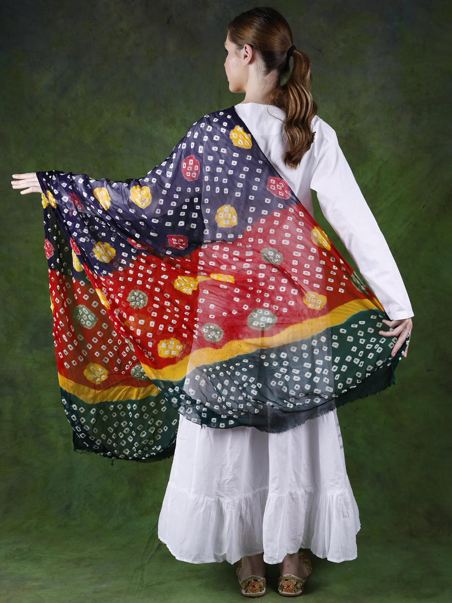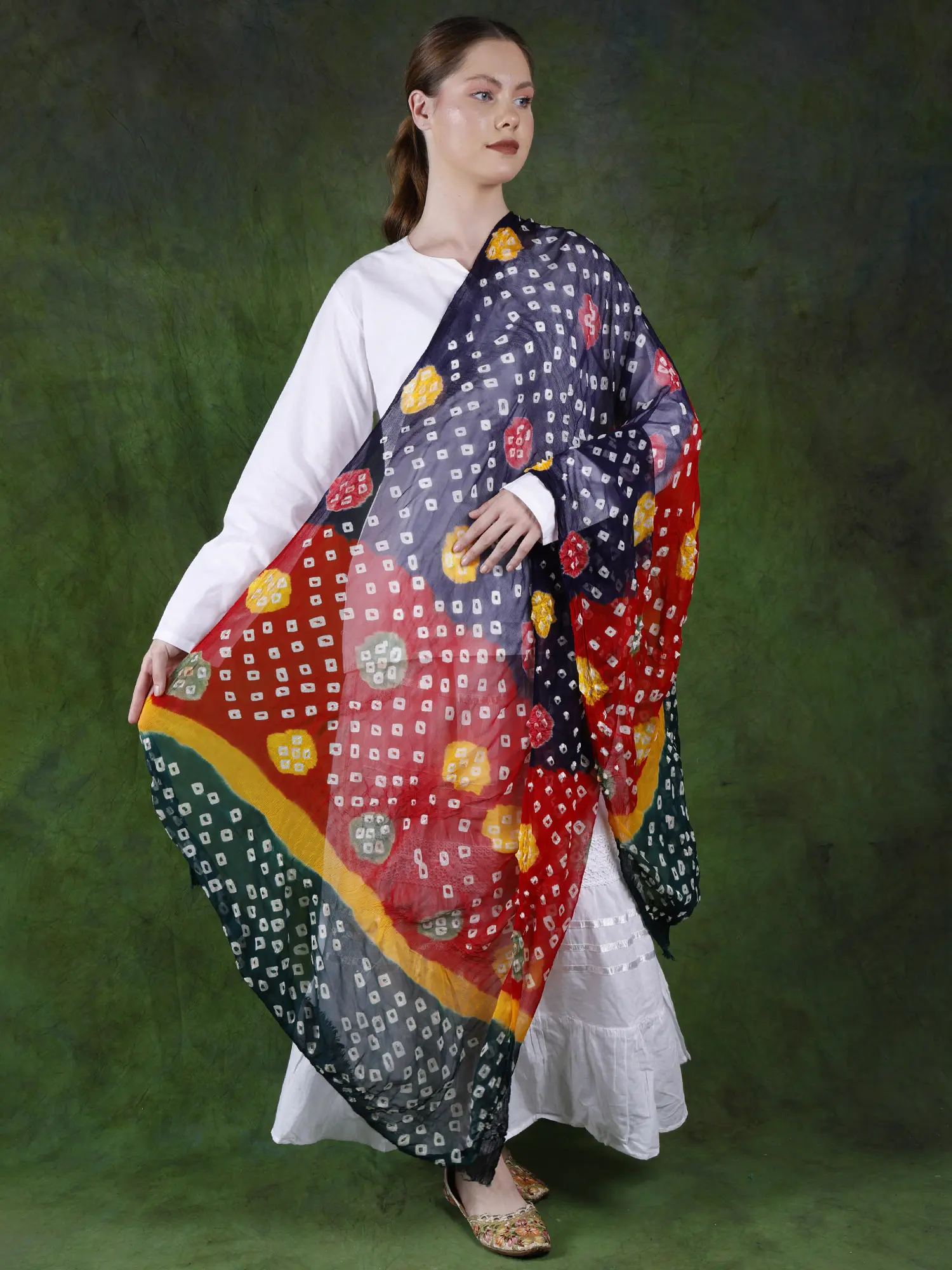Tri-Color Rayon Bandhani Tie-Dye Printed Dupatta from Gujarat