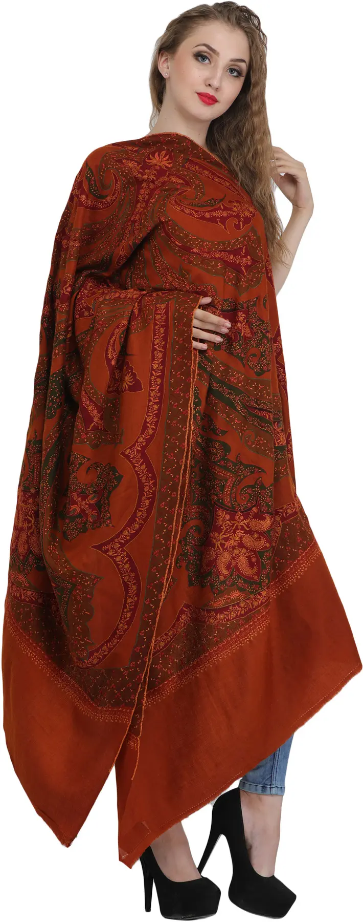 Multicolor Diamond Pattern Pure Pashmina Shawl with Sozni Hand-Embroidered Floral Butta from Kashmir