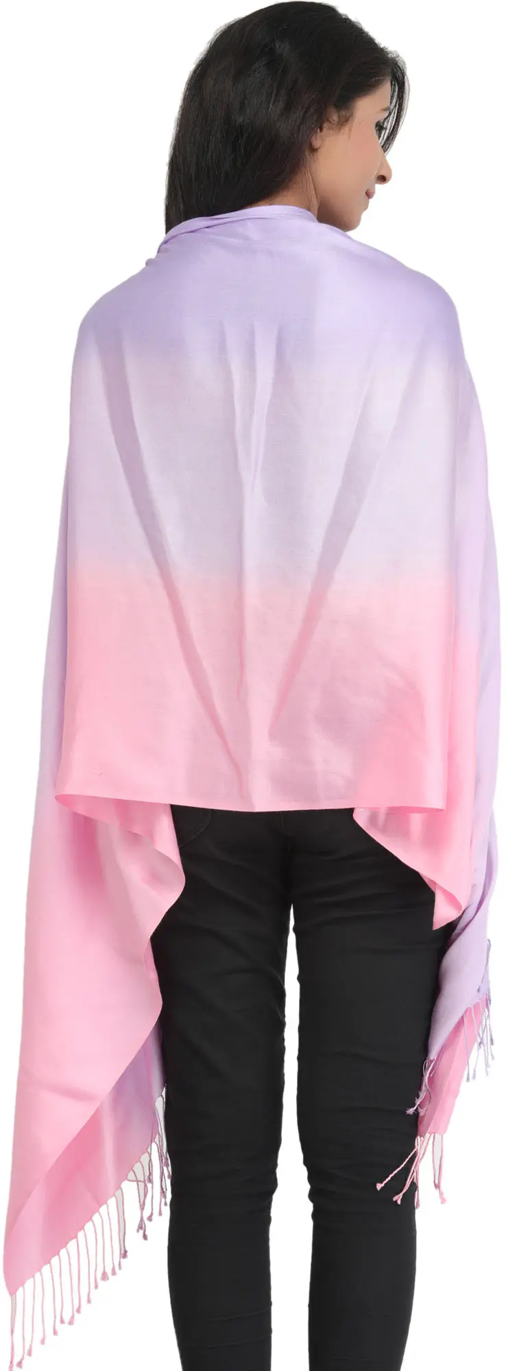 Rose-Dust Pure Wool Plain Shawl from Kashmir with Sozni Embroidered Border by Hand
