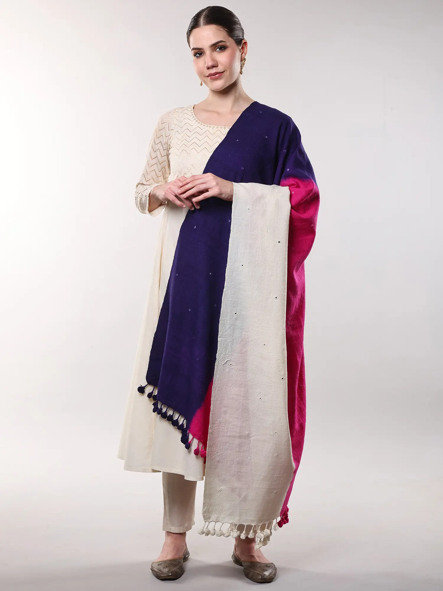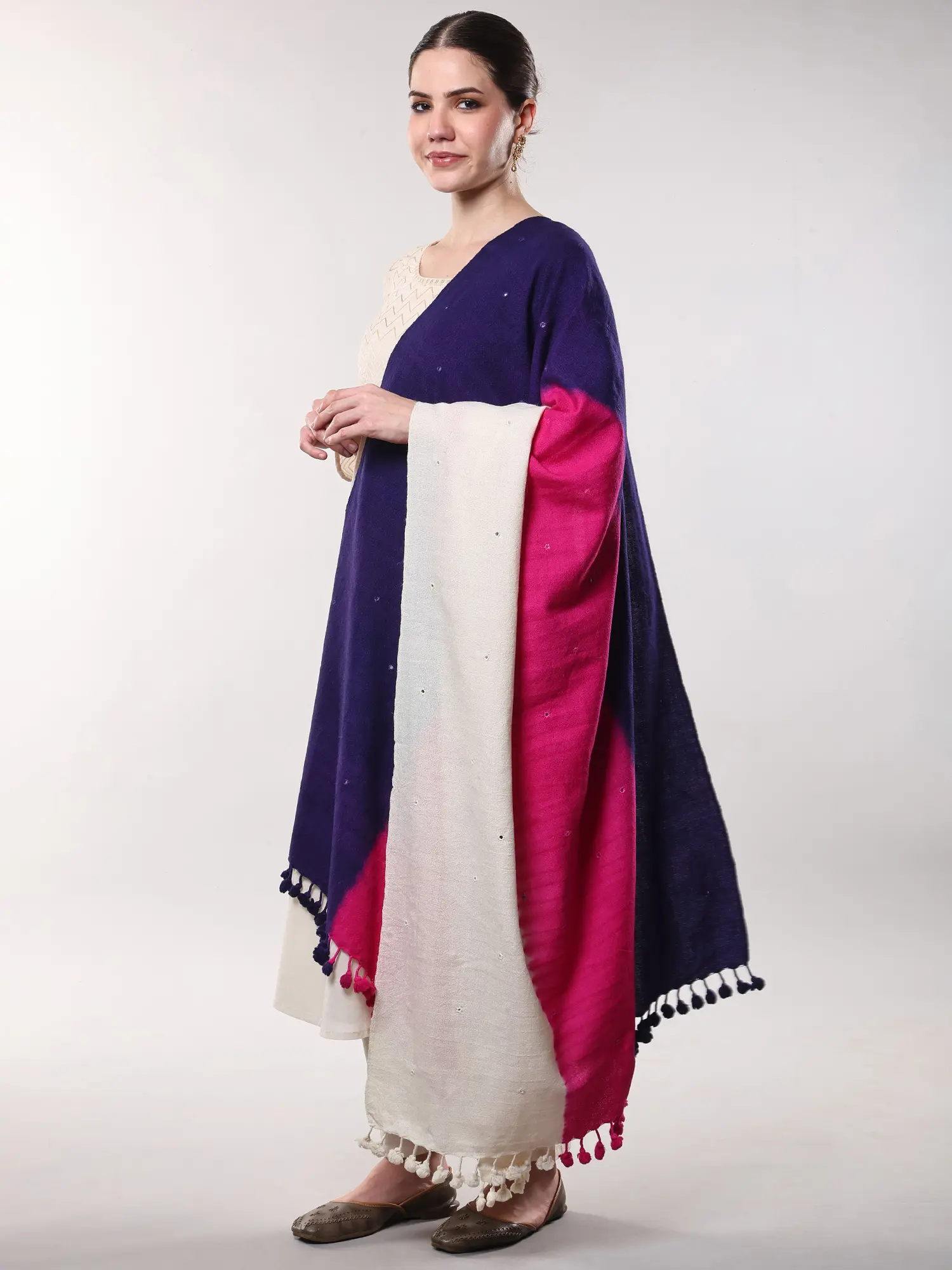 Drape it elegantly over a simple kurta for a touch of bohemian chic, or use it to add a layer of warmth and sophistication to evening wear. Its substantial size allows for myriad styling possibilities, from a traditional shawl to a striking statement wrap. It’s the perfect companion for cooler evenings, sophisticated gatherings, or simply as a luxurious touch to your everyday ensemble.