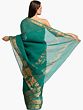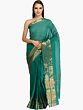 Tropical-Green Plain Upada Sari from Andhra Pradesh with Zari Weave on Border