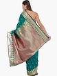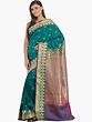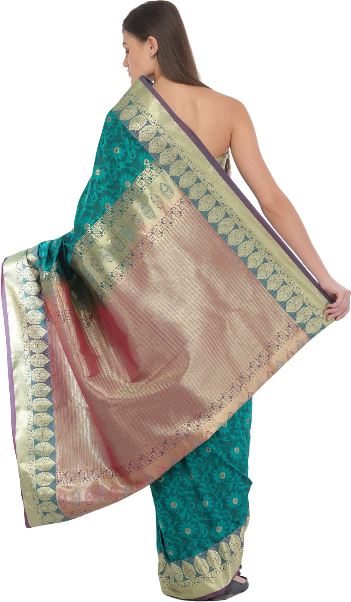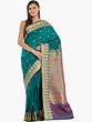 Deep Ocean Hues Pure Silk Saree with Golden Border and Floral Motifs