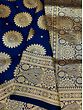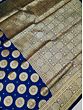 True Blue Banarasi Satin Silk Saree With All-Over Zari Chakra Floral Pattern And Kali Motif On Pallu