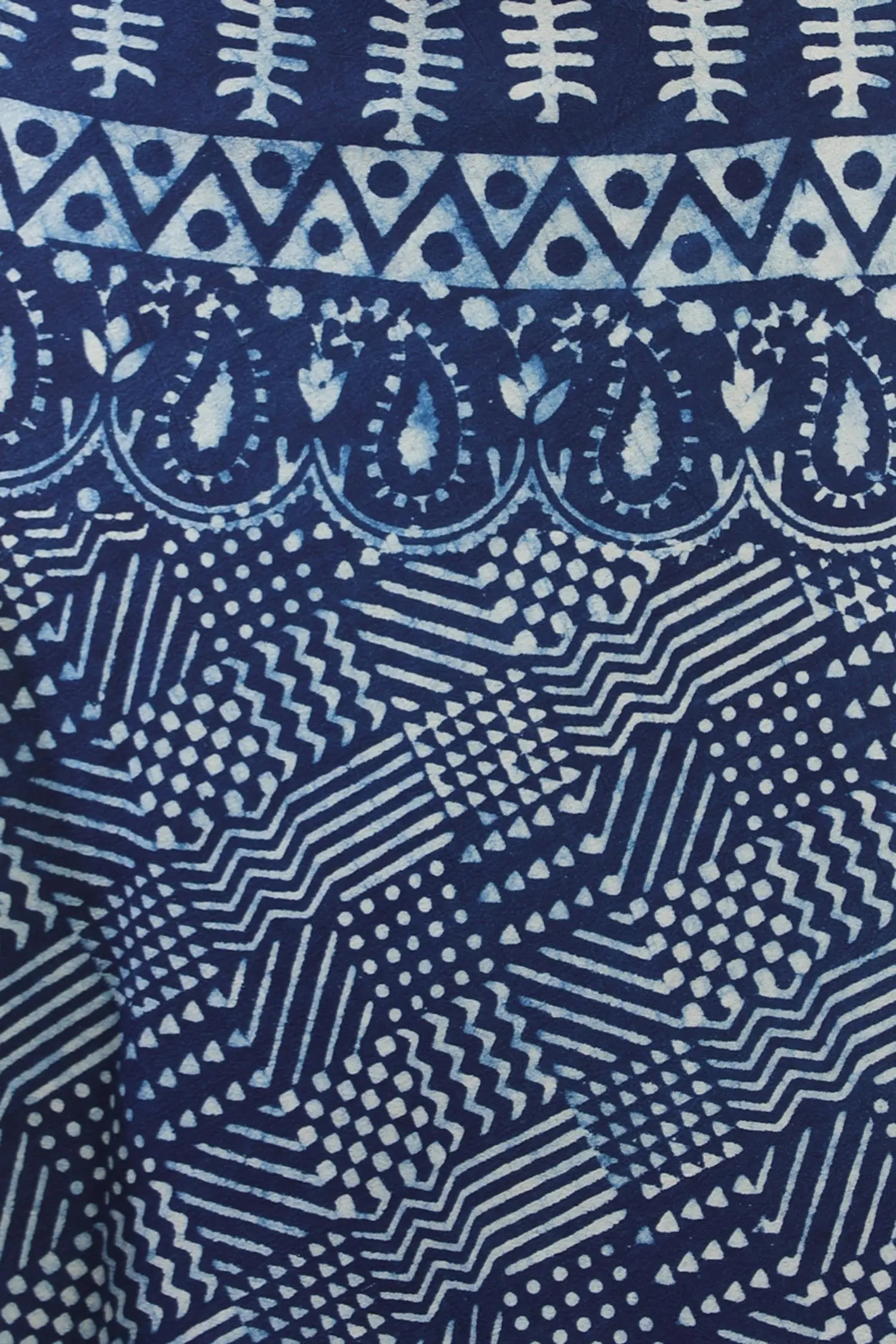 Block-printing in the Indian subcontinent speaks volumes about fashion and art in each respective pocket wherein it is practised. The classic blue and white colour combination will allow you to team this with a variety of shirts and blouses.