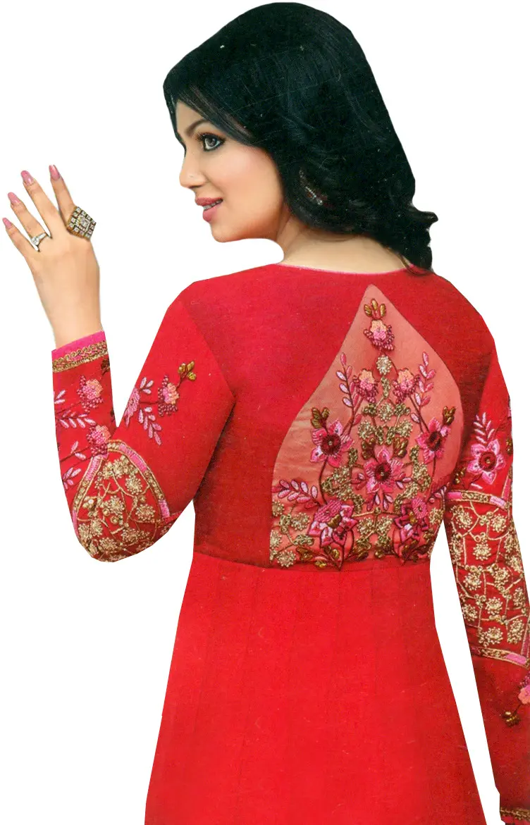 Step into the spotlight with the breathtaking True-Red Ayesha Anarkali Suit, a masterpiece designed to make you the radiant center of any celebration. Crafted from luxurious georgette, this ensemble promises a graceful drape and a stunning silhouette, perfect for wedding festivities, formal gatherings, or any occasion where you want to make a memorable statement. The vibrant, true-red hue evokes passion, confidence, and timeless beauty, ensuring you stand out with effortless charm.