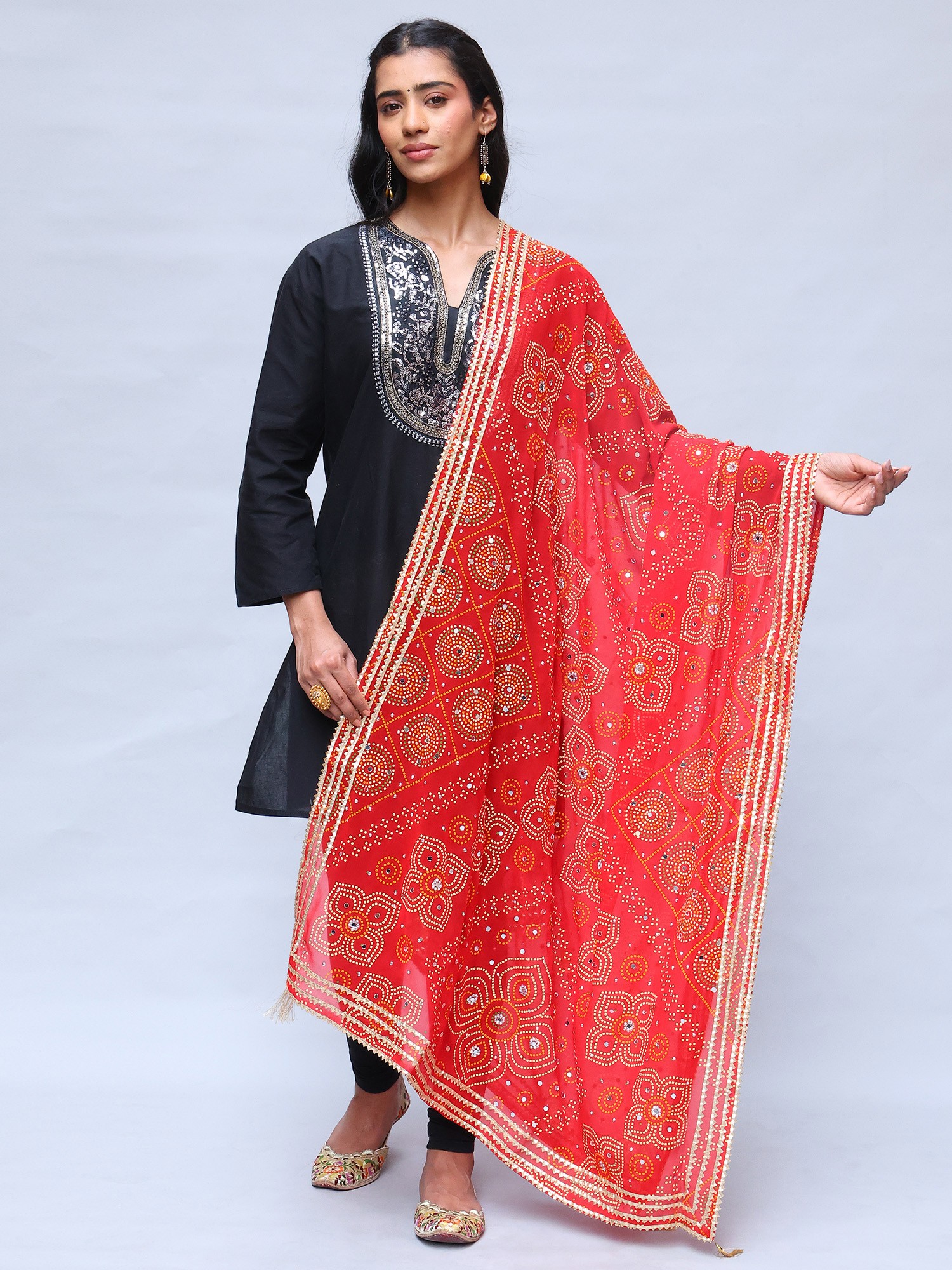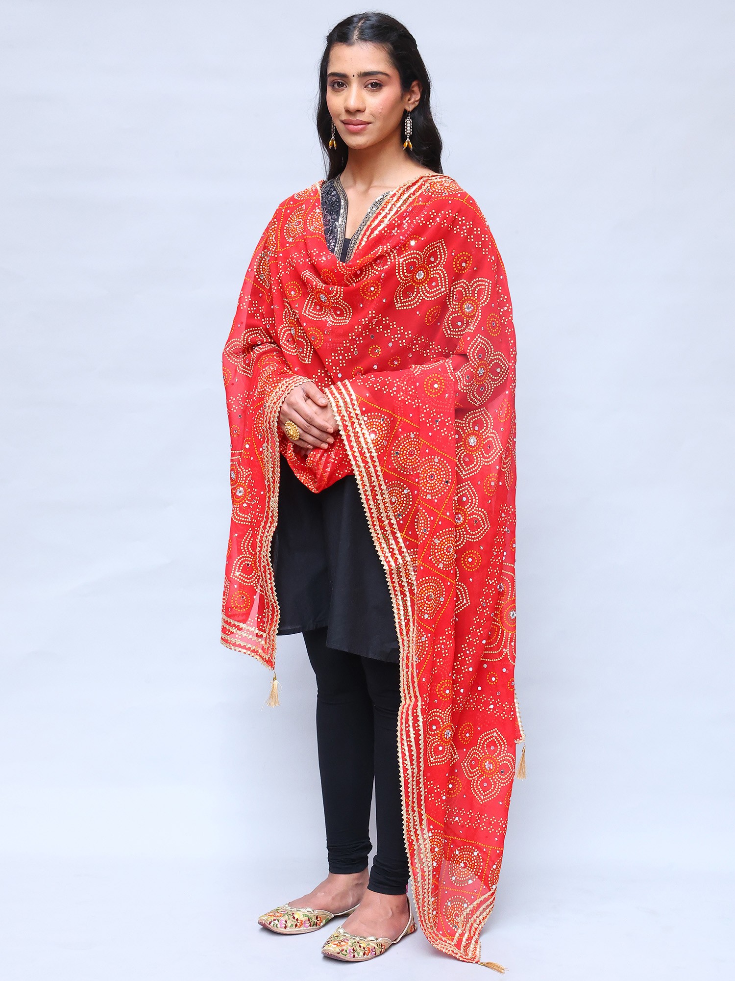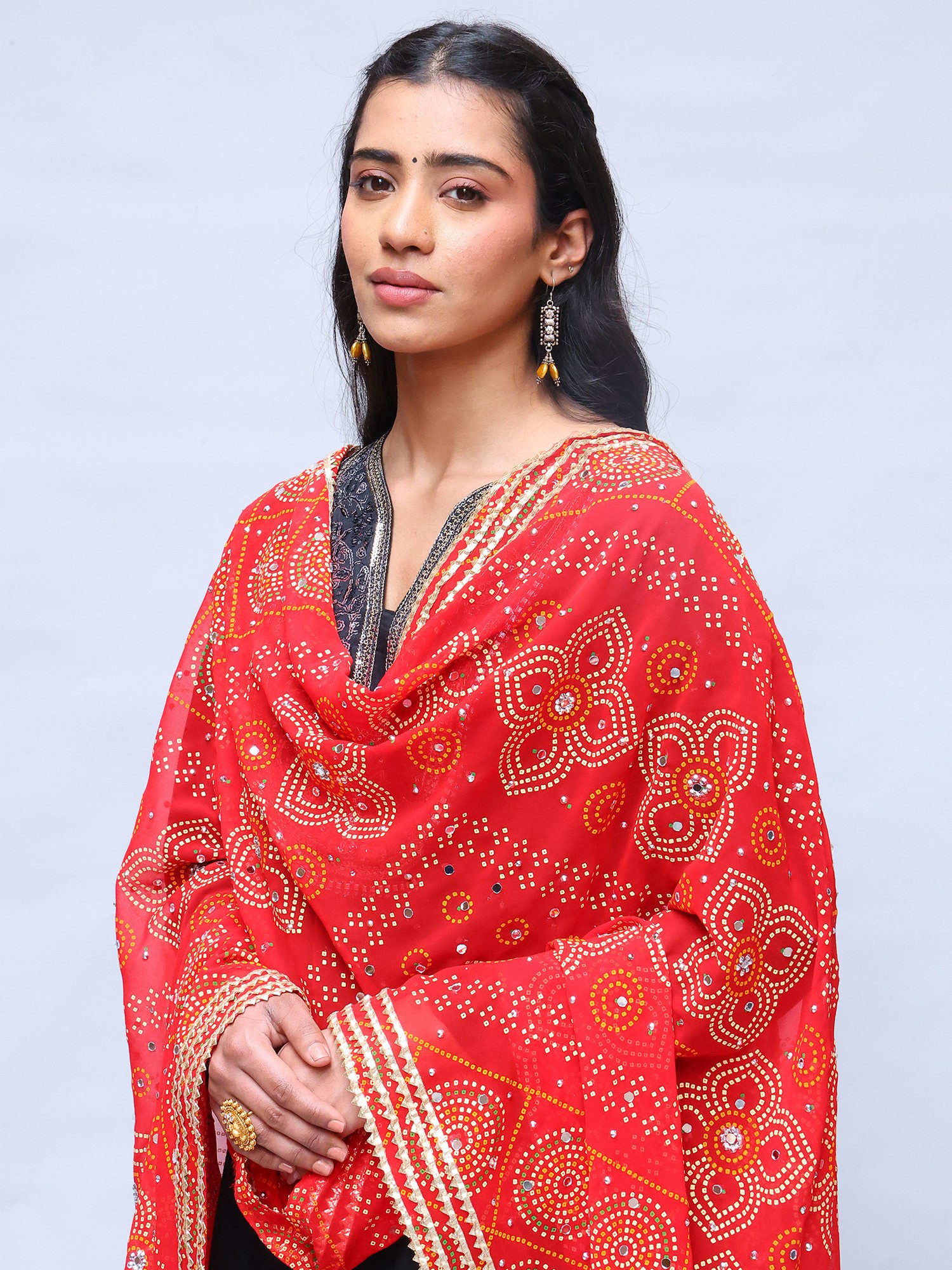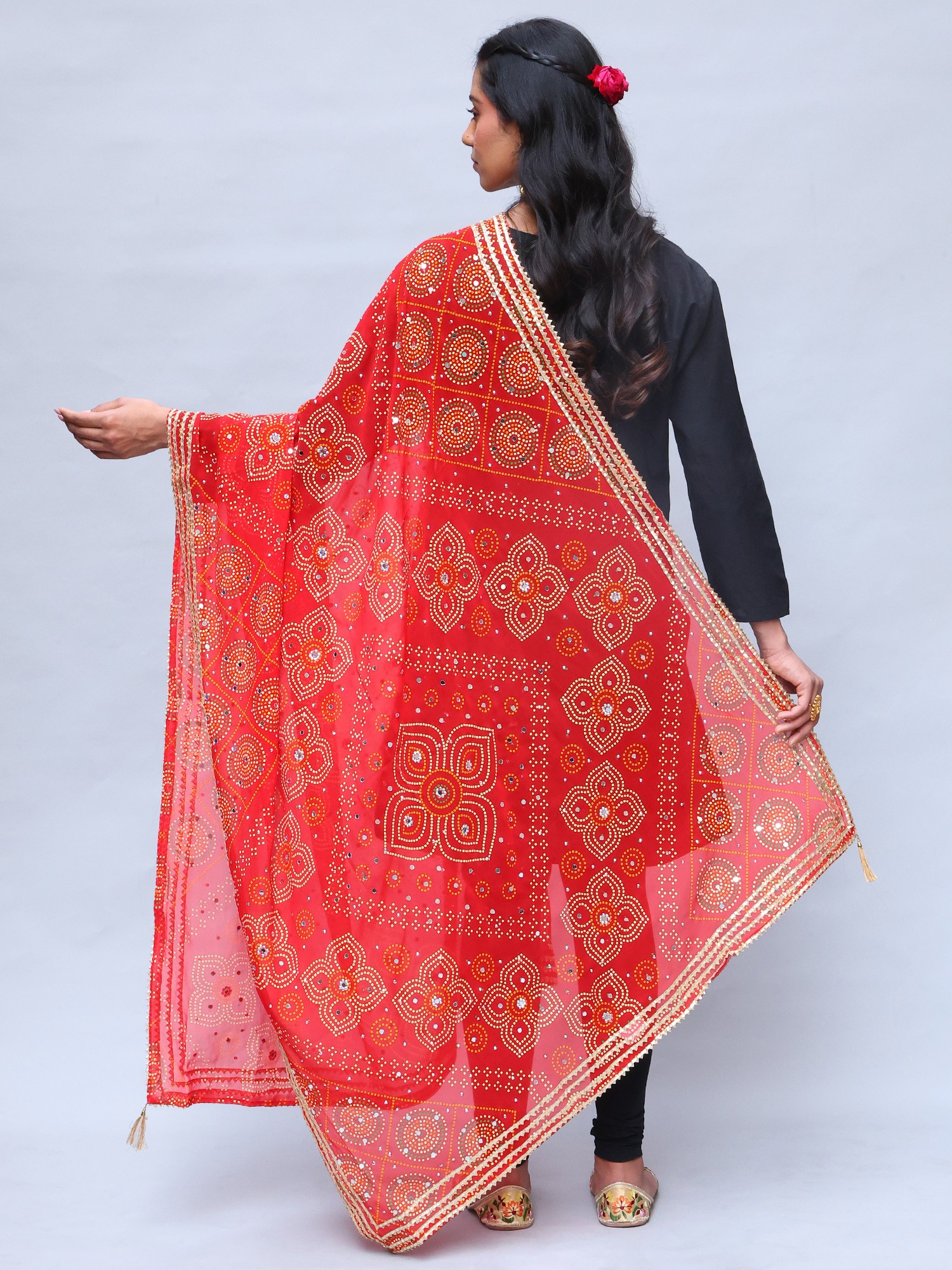 Bandhani Gharchola Silk Dupatta with Giant Paisleys