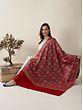 The masterwork of Sozni embroidery fills the vibrant red canvas of this pure handwoven Pashmina. At the ends of the shawl, we are given a glimpse of the bold red used by the maker of the shawl which on the body is shadowed by the tastefully complex needlework. Paisley or the mango motif which in Indian tradition represents auspiciousness, fertility, and newness is employed on the body and the border along with large flowers. The space between paisleys and floral motifs is filled profusely with flowing vegetation that adds to the elegant beauty of the Sozni Pashmina shawl. Replete with symbols of life, bliss, and fortune, this shawl is the perfect statement piece for the regalia of winter.