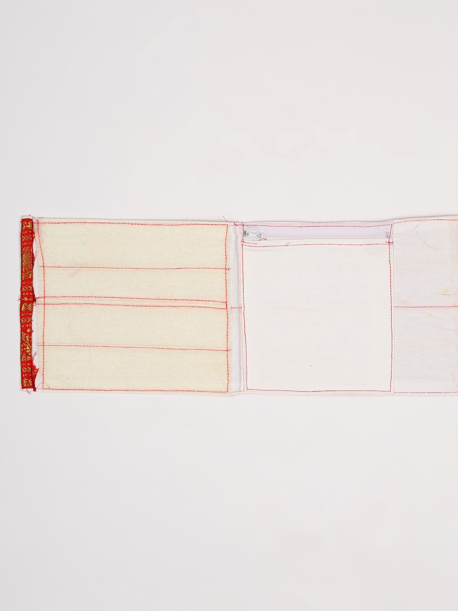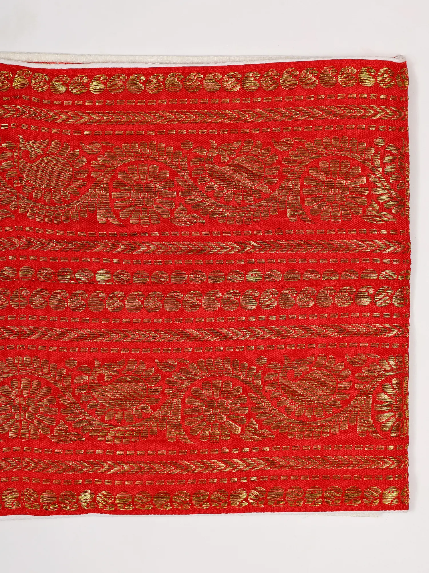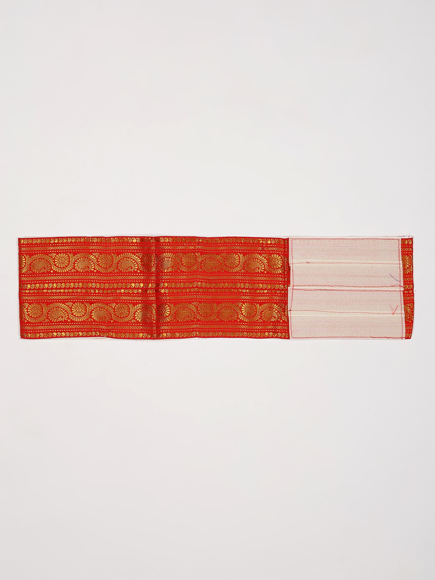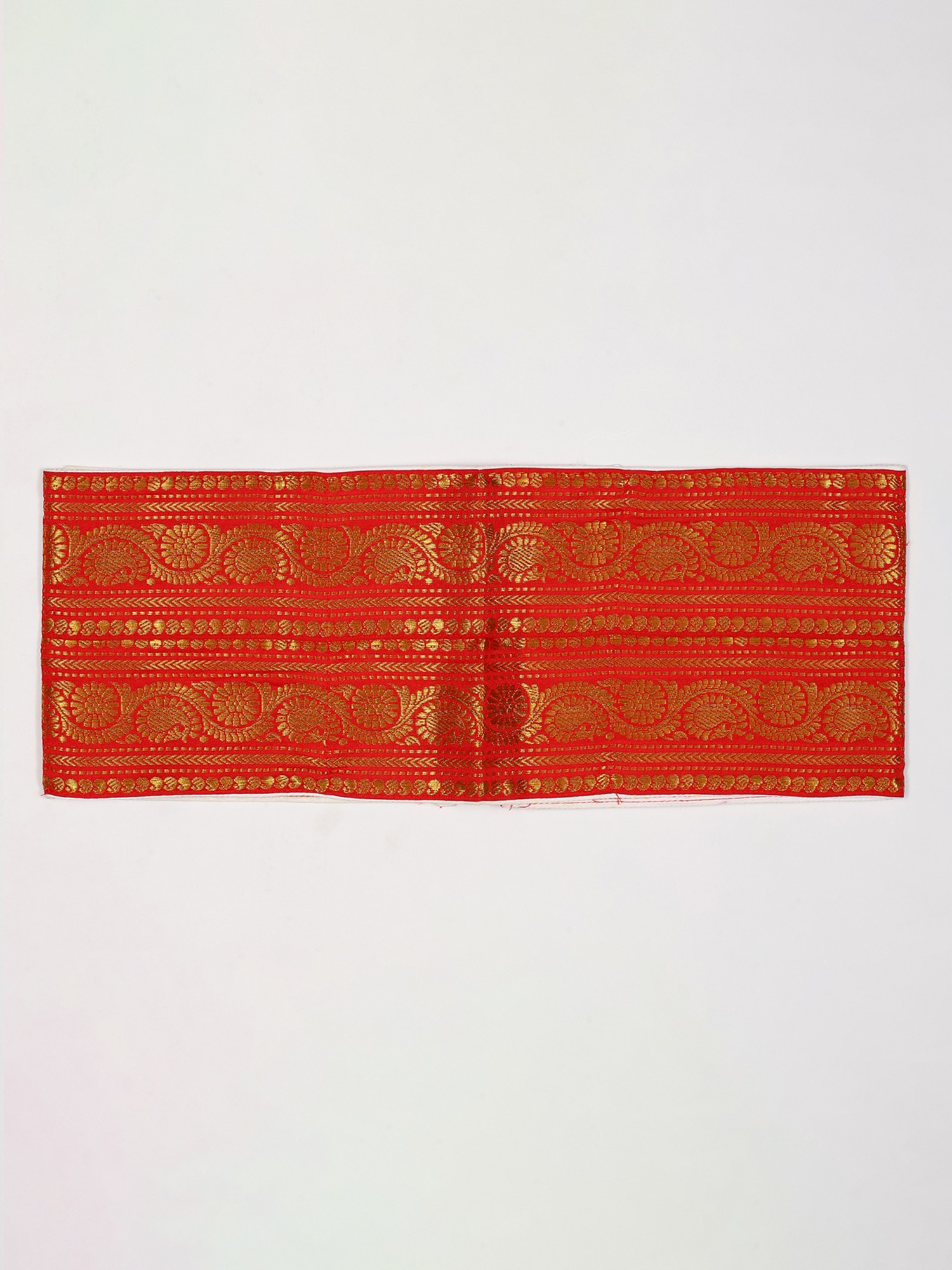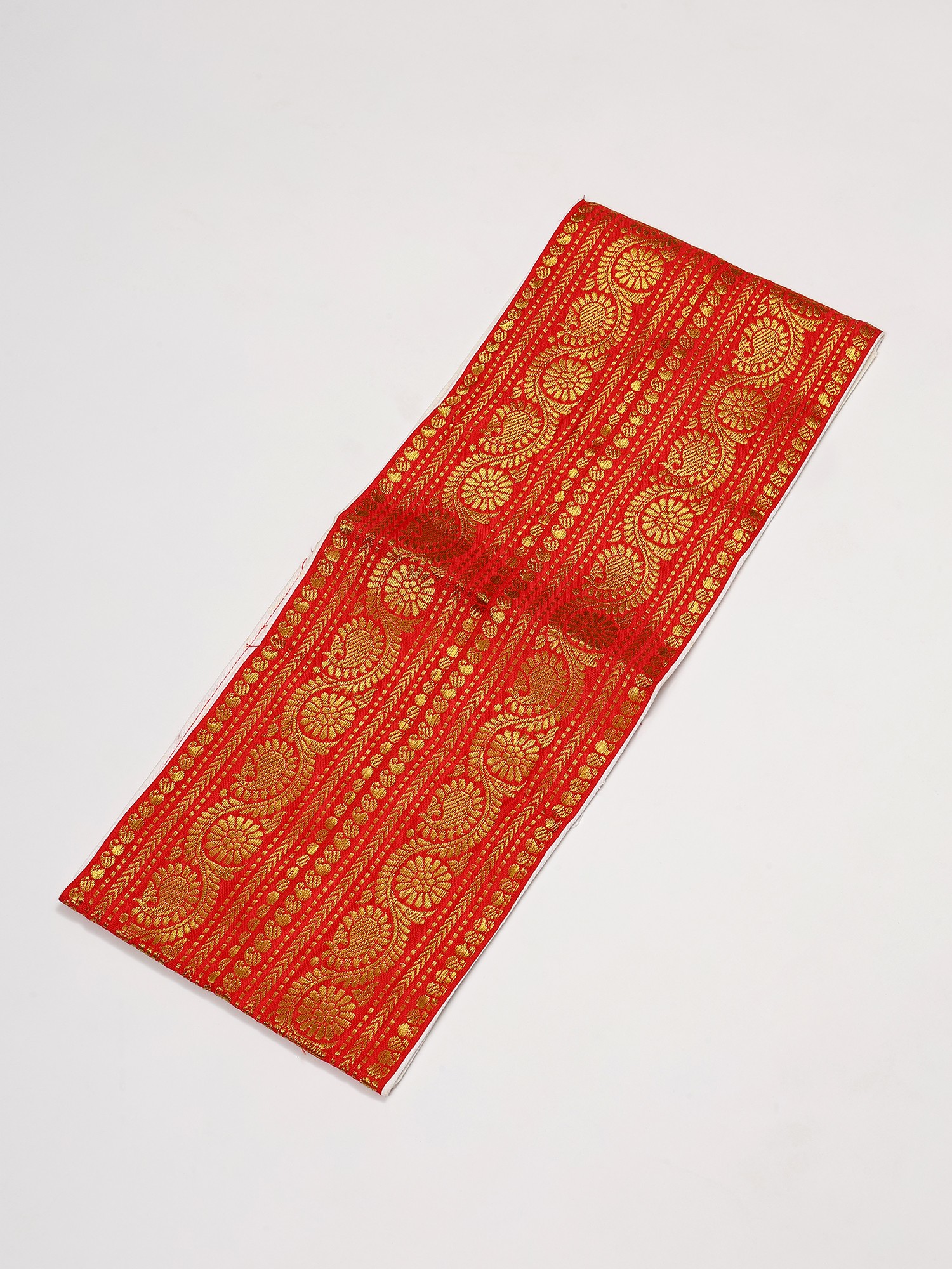 Poppy-Red Zari Woven Dhoti Belt with Zip Pouch/Pocket