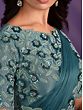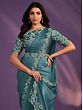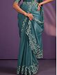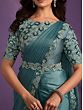 Turkish Blue Crepe Satin Silk Embroidered Stone Saree And Leaf Pattern In Border And Pallu With Floral Blouse