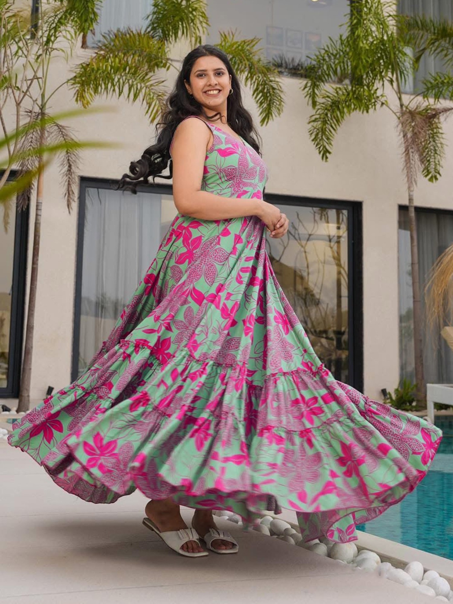Digital Print Fully Flared Heavy Rayon Anarkali Gown