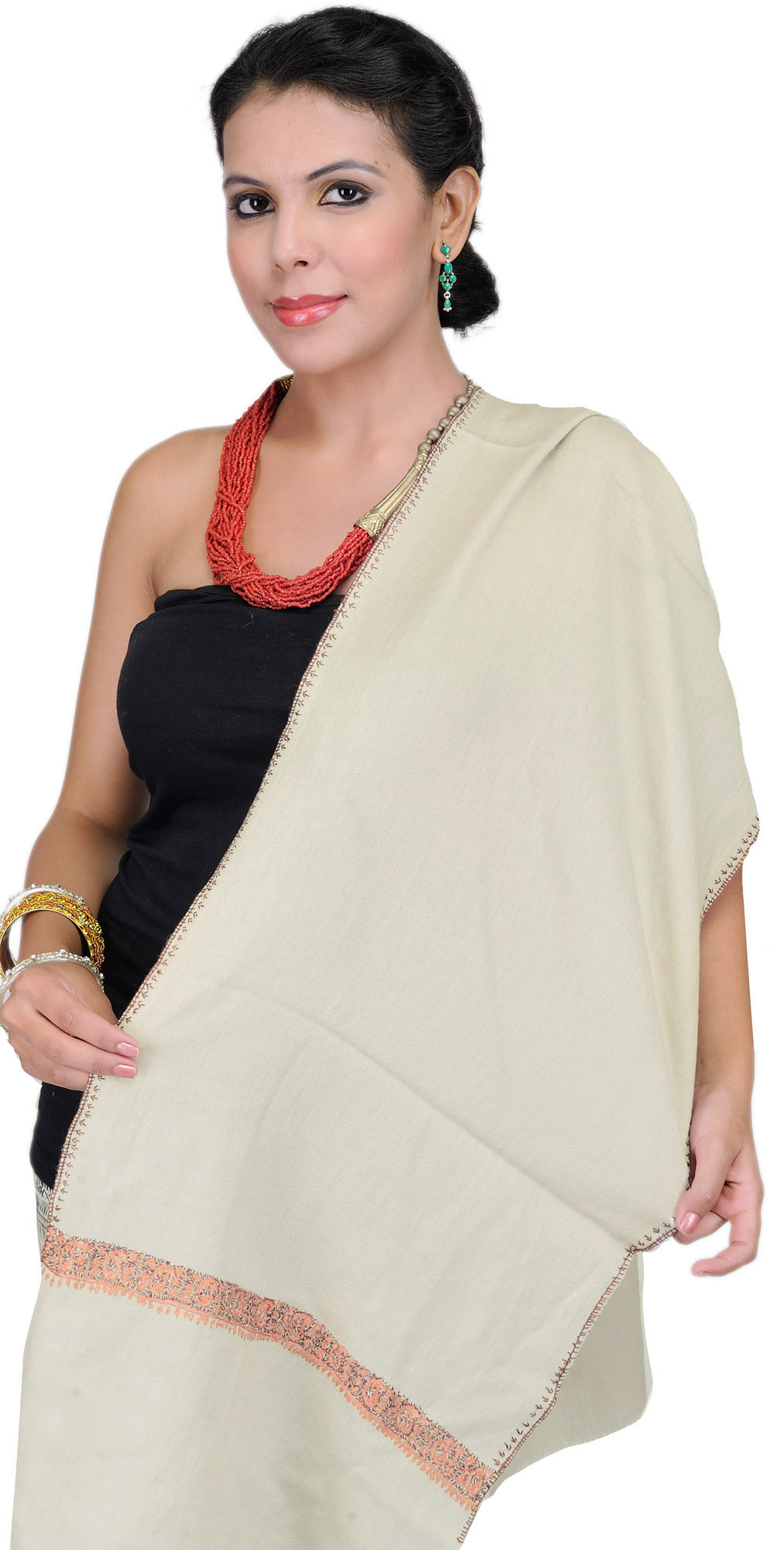 Tusha Scarf from Kashmir with Sozni Embroidered Border