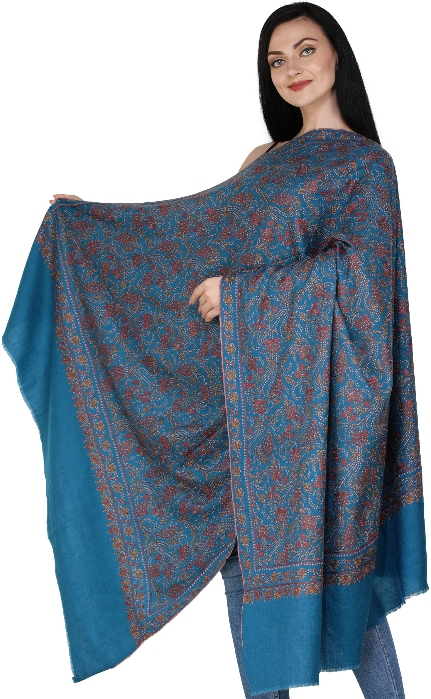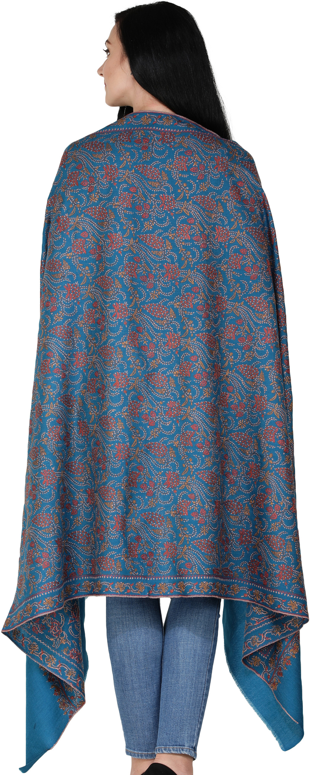 Finish off your wear with something shiny and attractive shawl that will surely make you the centre of the attraction. This exclusive floral and wine patterned shawl is just the right fit for that. It is one of those pure and 100% natural Kashmiri shawls with Sozini embroidery that will be perfect for both casual and formal occasions. You can pair it with a coat, suit, saree, jacket, and sweaters. Just lay this shawl on your shoulders and experience its luxury.