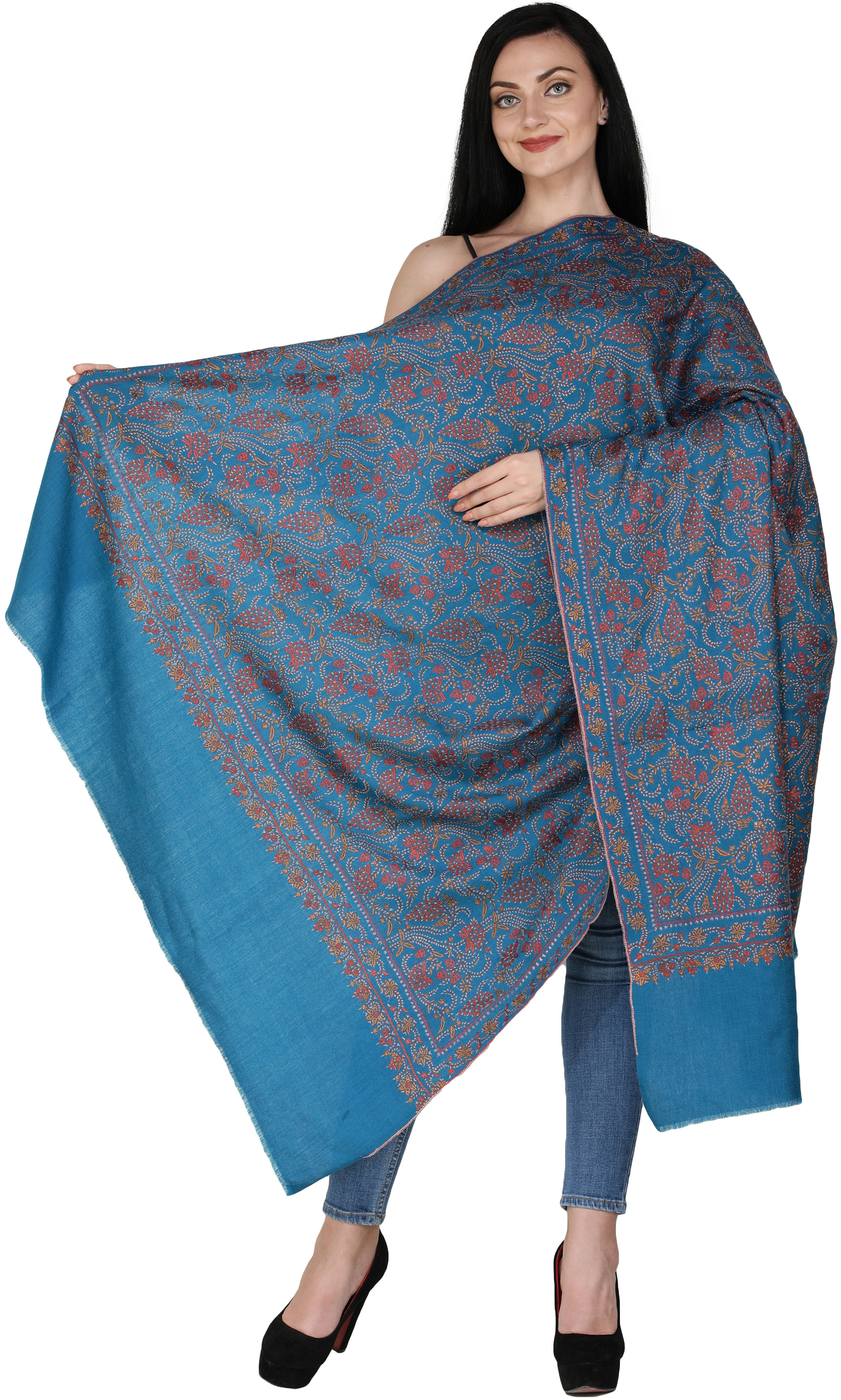 Further, this is a soft and light-weighted material that also provides warmth during the winter season. On another note, you can also gift this amazing multicoloured Tusha Shawl from Kashmir, whose uniqueness will make it the most adorable gift for your partner, friend, or for anyone. It would be best if you also considered that this product is handmade, which is reflected in its elaborate and precise design.