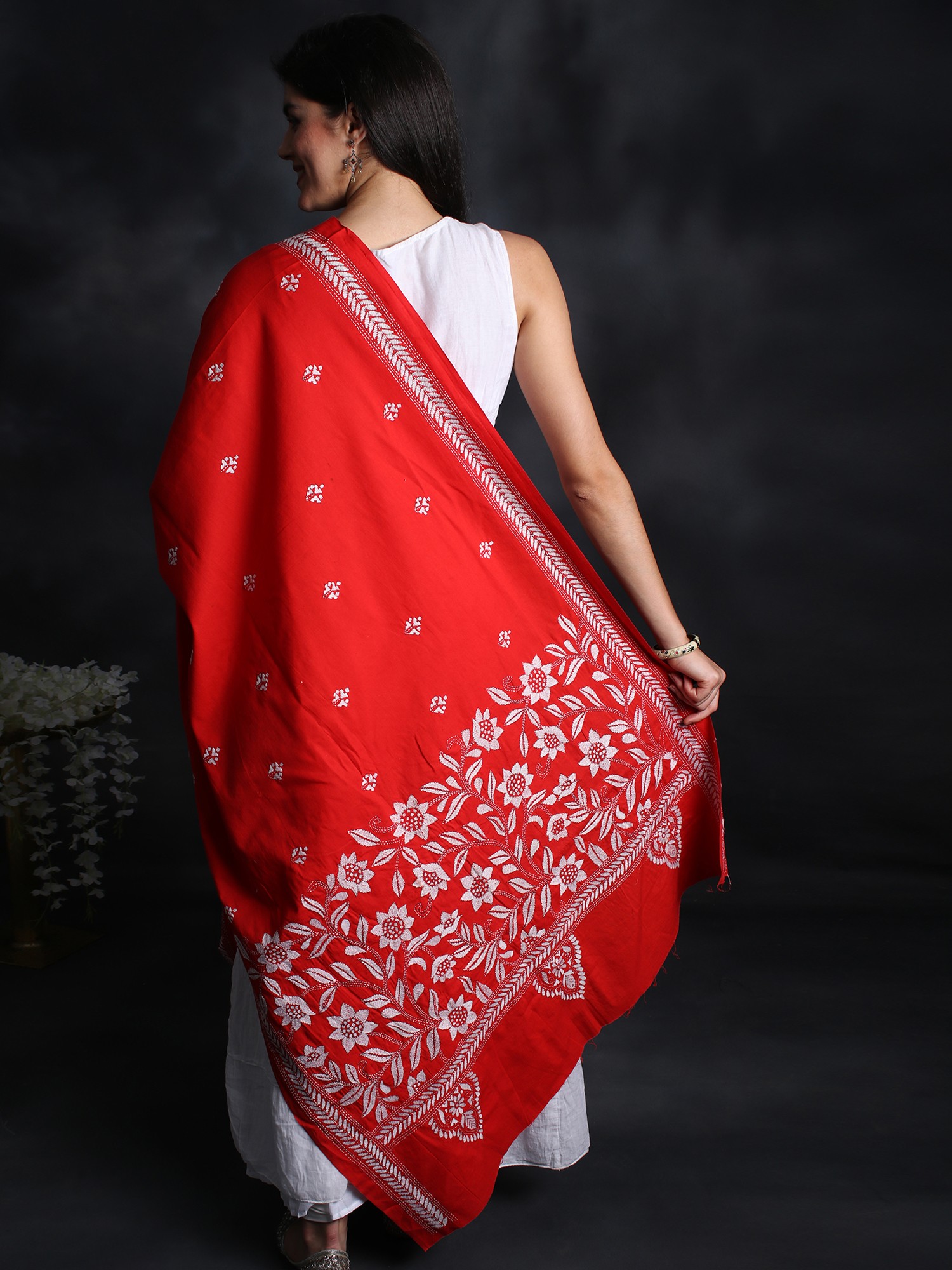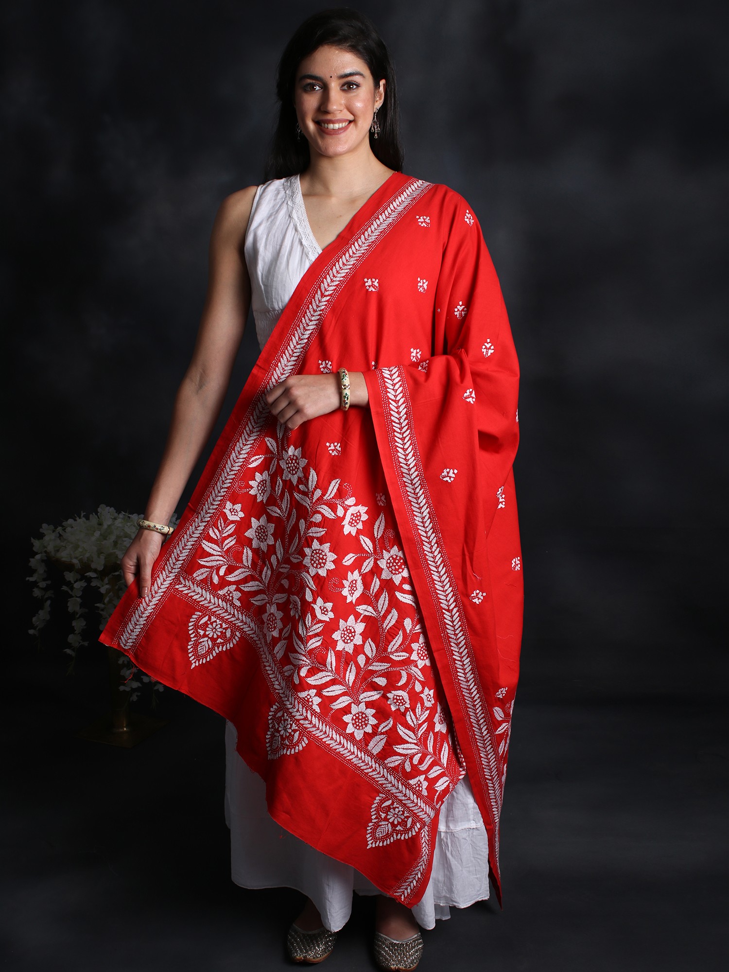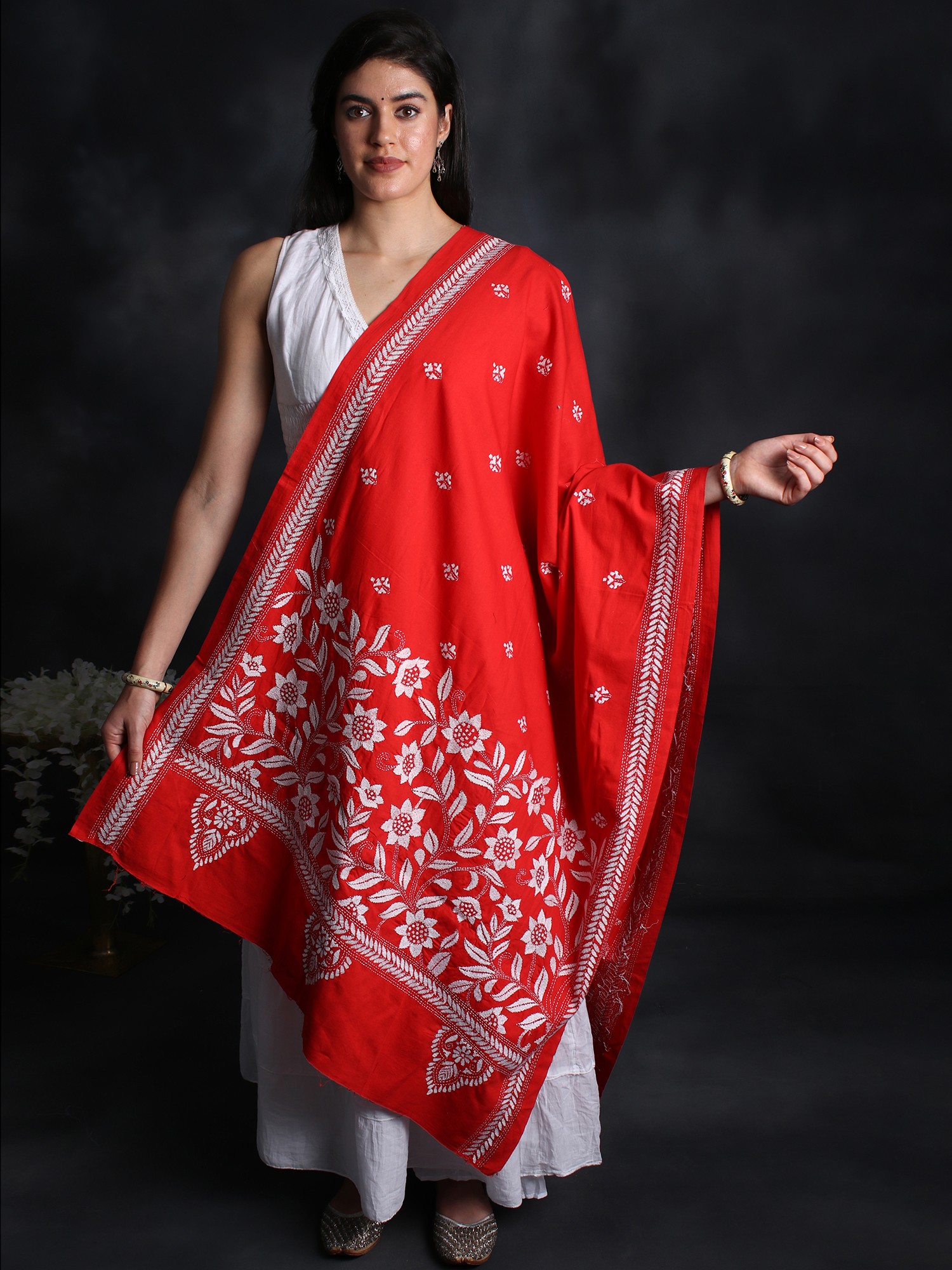 Elevate your style with our Tussar Silk Dupatta from Bengal, embellished with Color Floral Kantha Embroidery. Crafted from the exquisite Tussar Silk, this dupatta pays homage to the rich textile traditions of Bengal. The ancient Kantha embroidery technique, which traces its roots to rural Bengal, has evolved over time. Today, it gracefully aligns with contemporary fashion trends, making this dupatta a cherished accessory. The single-color floral motifs add timeless elegance, enhancing your ensemble with artistry and heritage.