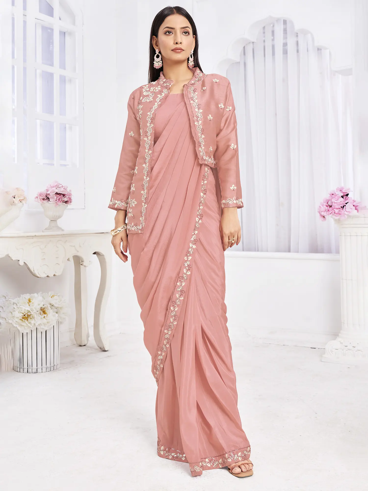 Lucent-White Georgette Designer Saree with Sequins-Stone Embroidery and Jhalar Pallu
