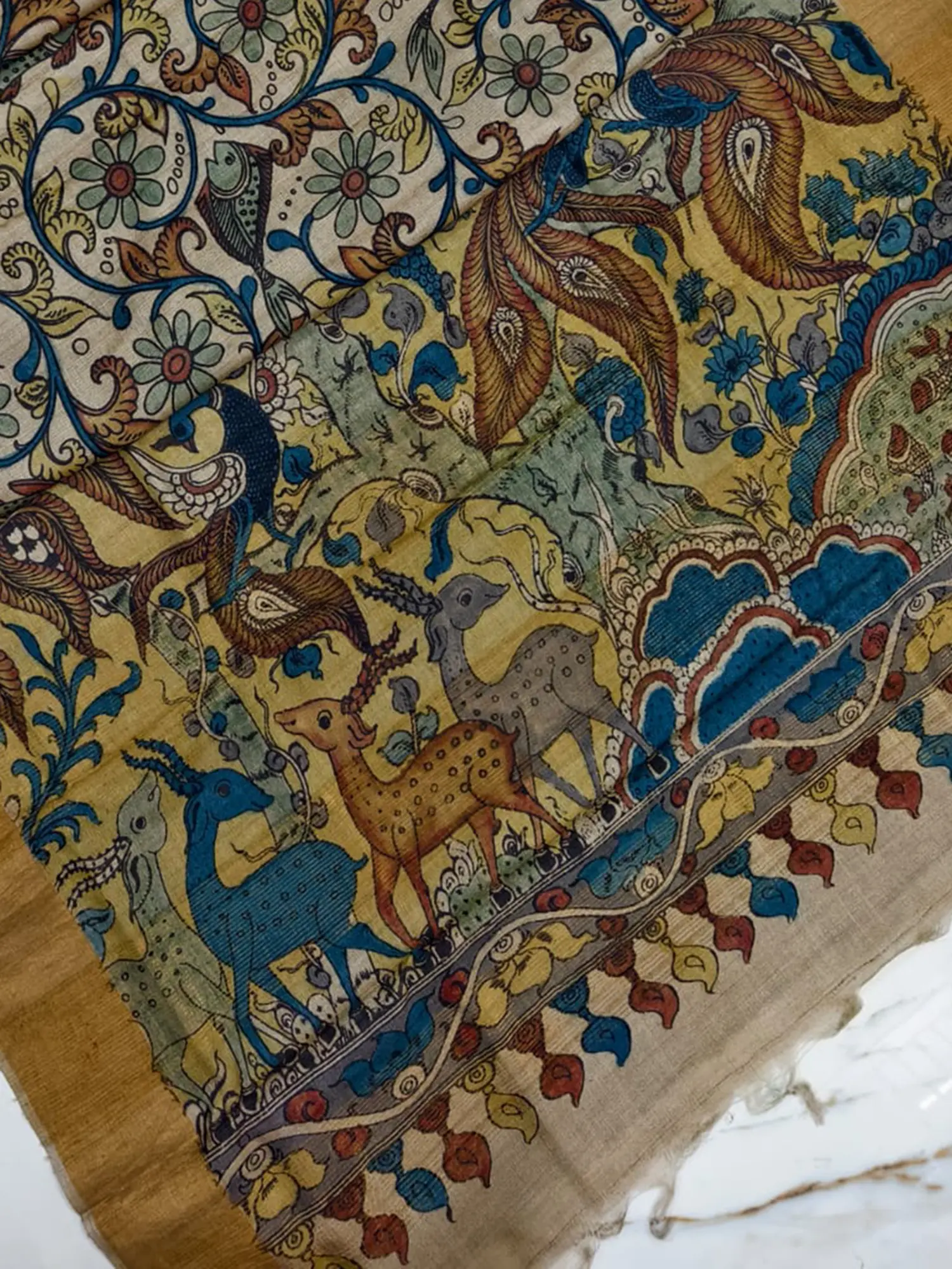Sari from Punjab with Phulkari Embroidery in Self and Golden Border