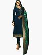 Discover a new level of sophistication with this exquisite pure silk salwar kameez suit. The deep, captivating twilight-blue hue forms the base of this stunning ensemble, exuding an air of understated luxury and timeless charm. Crafted from the finest pure silk, this suit promises a luxurious feel against your skin, ensuring comfort without compromising on style. Whether you're attending a wedding, a festive celebration, or a formal gathering, this outfit is designed to make you stand out with its refined elegance.
