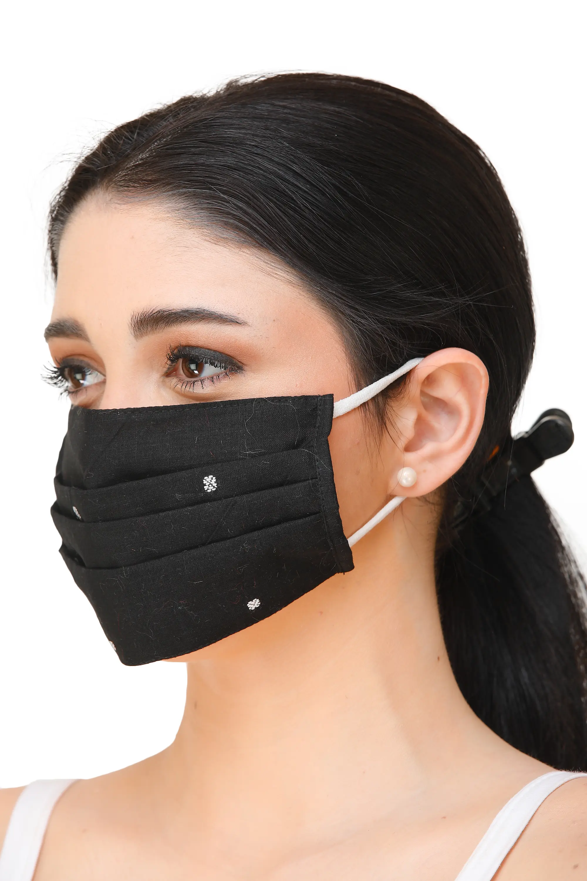 Made from pure cotton, this mask epitomises comfort and breathability. The handloom weaving gives an artisanal touch, reflecting the rich heritage of Karnataka. Its two-ply design, coupled with a soft cotton backing, ensures optimal protection and ease for extended wear. The snug yet gentle ear loops promise a secure fit. More than a protective accessory, this mask is a symbol of responsible fashion, blending tradition and functionality seamlessly. Navigate the world confidently, knowing you embrace safety without compromising on elegance.