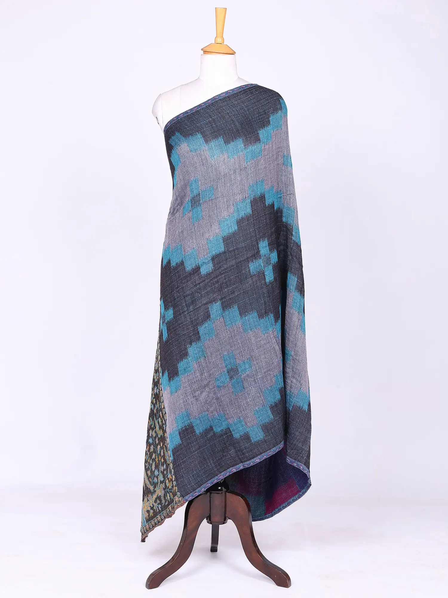 Bristol-Black Reversible Pure Wool Stole with Kani Weave Floral Palla