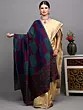 Adding a touch of timeless elegance, the palla of the shawl features a meticulously crafted floral design. This intricate embroidery bursts with a tapestry of colors – hints of ochre, rust, and emerald green are woven into a deep indigo background, evoking the lush beauty of a blooming garden. The floral motifs are rendered with remarkable detail, showcasing the weaver's precision and artistic vision. This contrasting yet harmonious element provides a beautiful focal point, framing the geometric checks with organic grace.