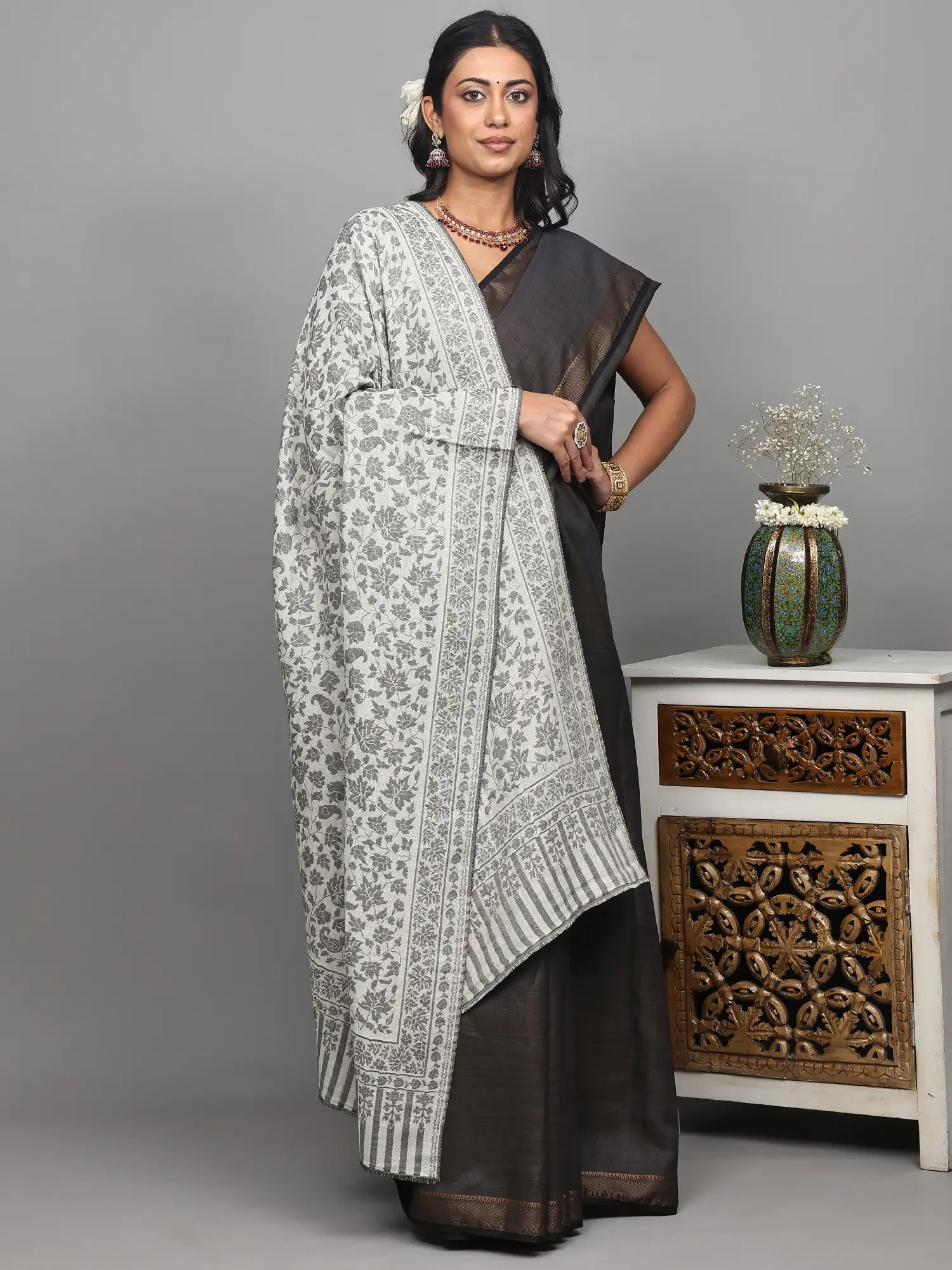 Kani Jamawar Stole from Amritsar with Woven Florals and Paisleys