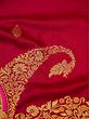 The suppleness of the floral pattern and the beautifully created parrots give the Banarasi saree a regalia and a feel of femininity you will come to adore.