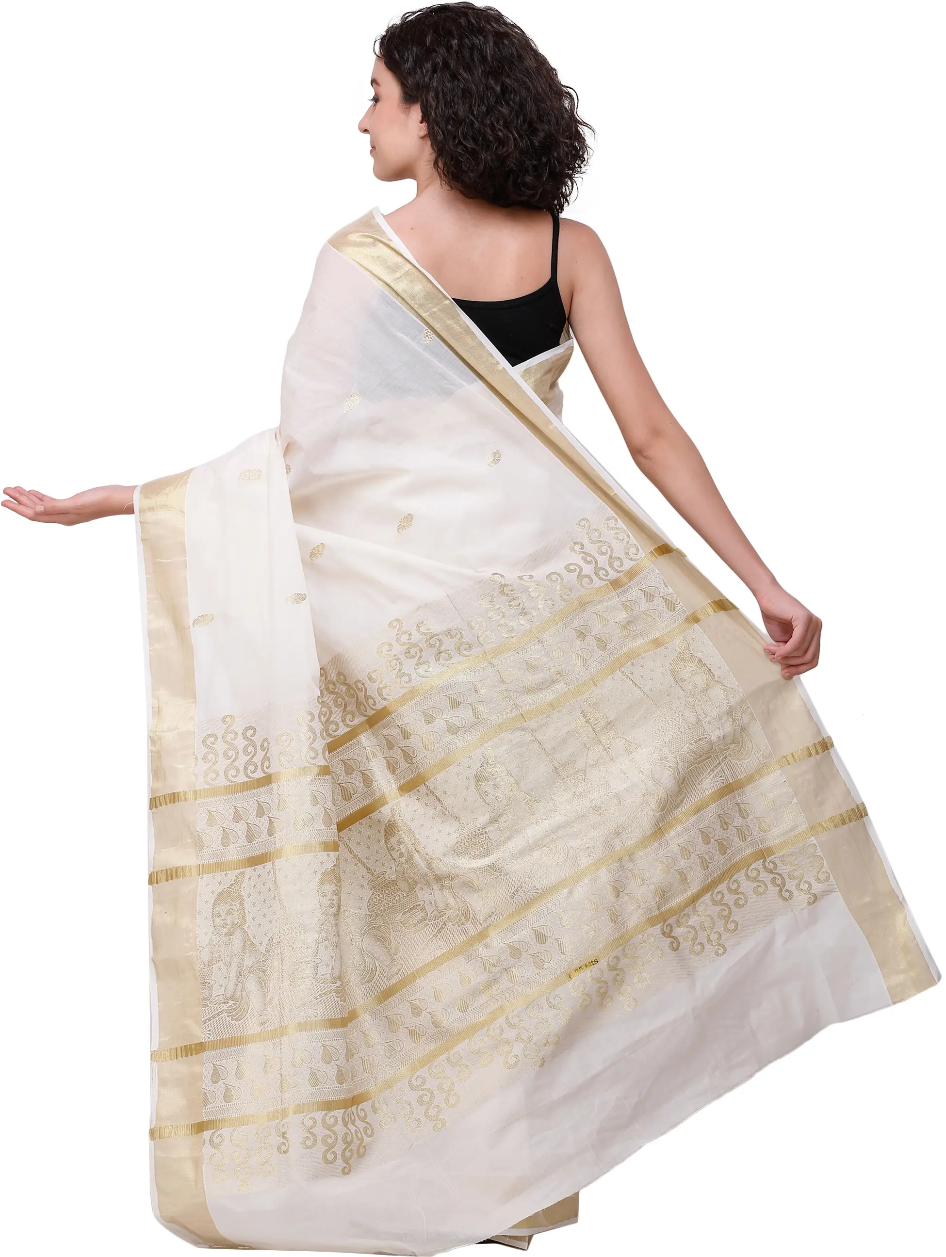 Art Silk Dupatta with Printed Folk Figures Inspired by Warli Art