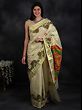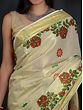 Ivory Kasavu Puja Sari from Kerala with Golden Border