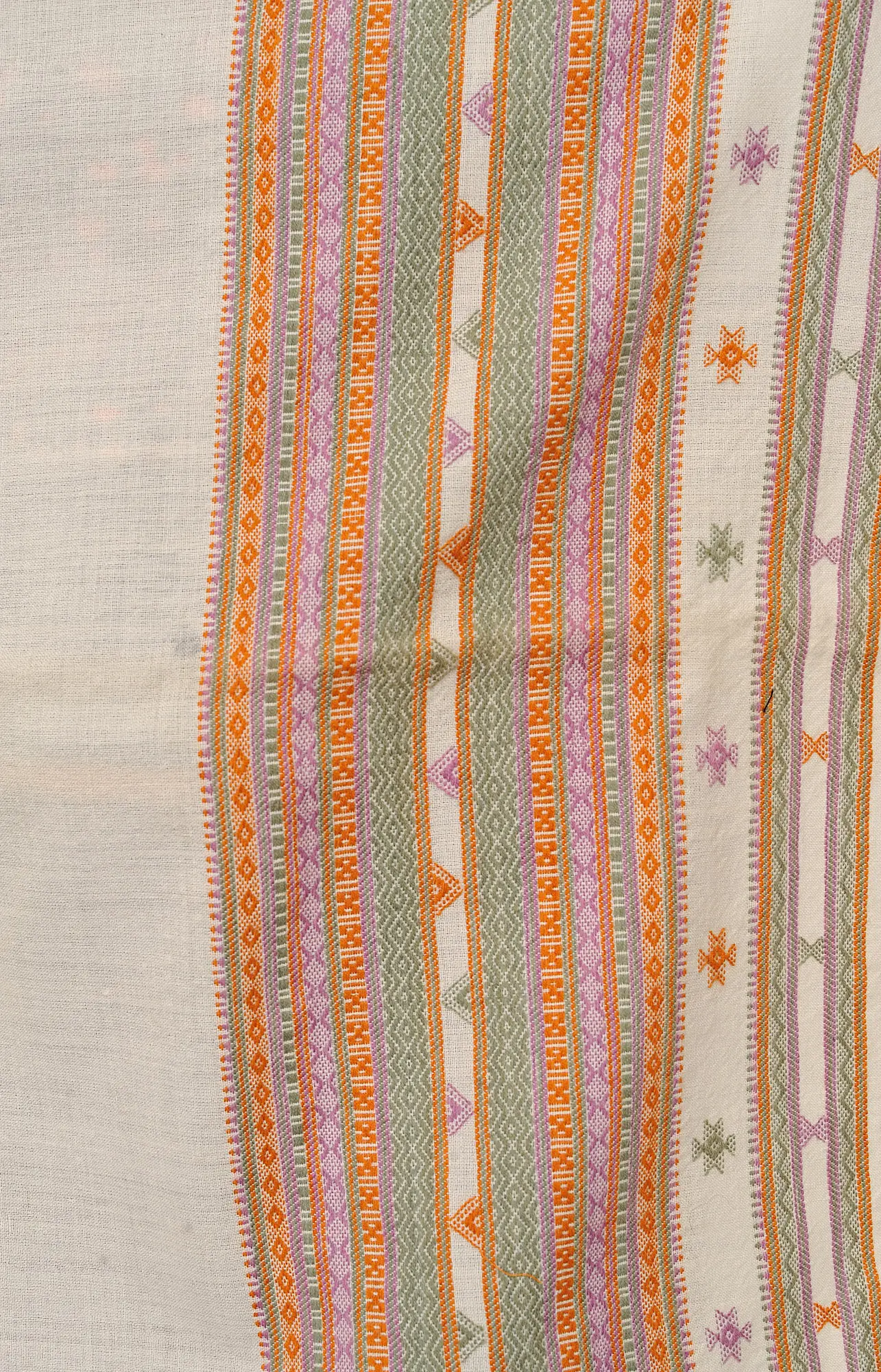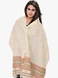 Papyrus-Ivory Shawl from Kutch with Woven Bootis and Mirrors