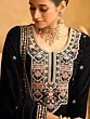 Night-Black Viscose Velvet And Micro Cotton Inner Embroidered Patiala Salwar-Suit With Faux Georgette Dupatta