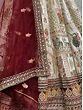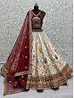 Bittersweet-Red Velvet Bridal Lehenga Choli with All-over Thread Embroidery and Net Dupatta