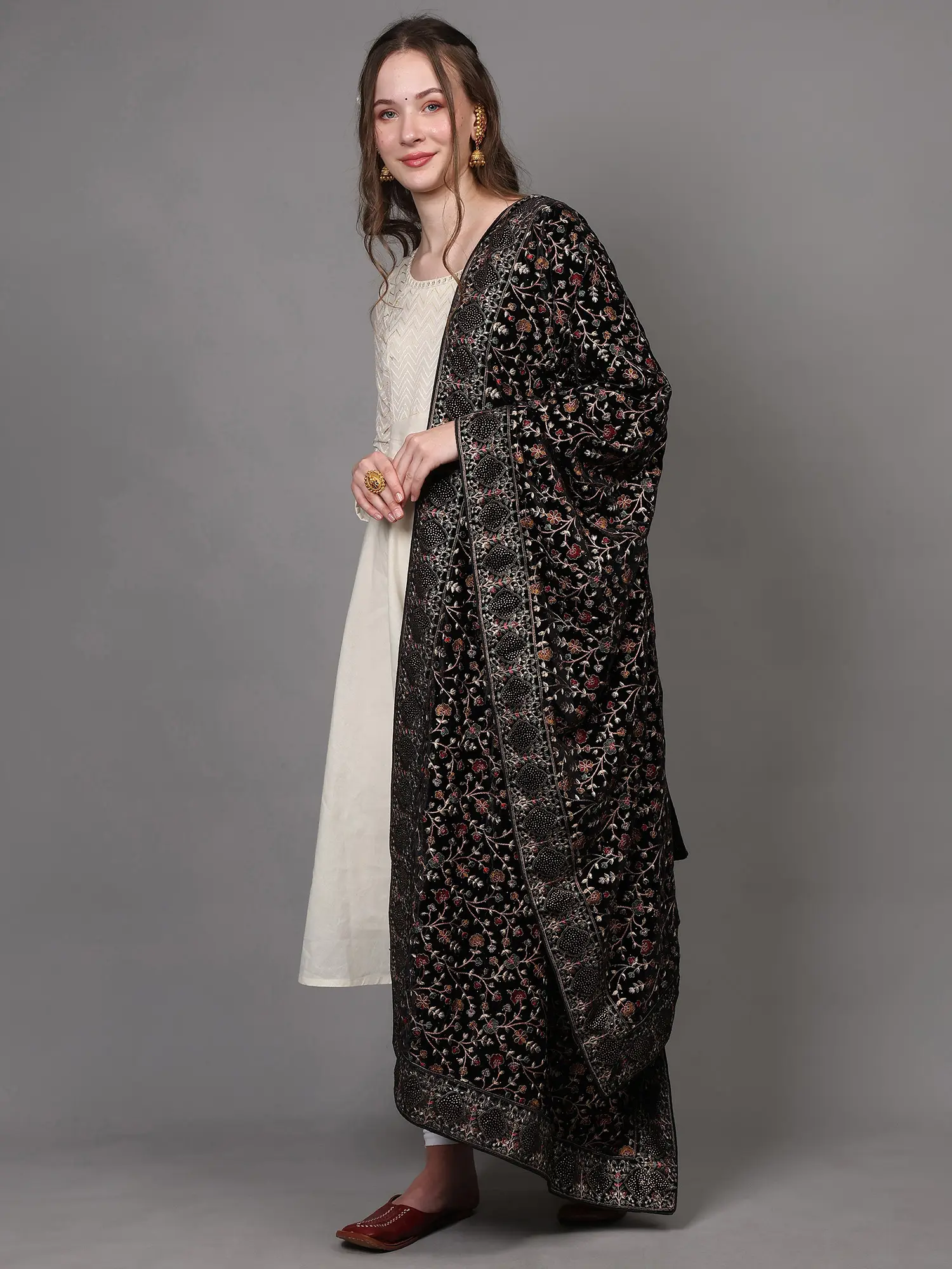 Velvet Dupatta with Aari Embroidered Motifs from Amritsar