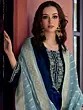 Astronaut-Blue Designer Embroidery Work And Sequins Work Round Neck Festive Wear Salwar Suit With Tassels Dupatta