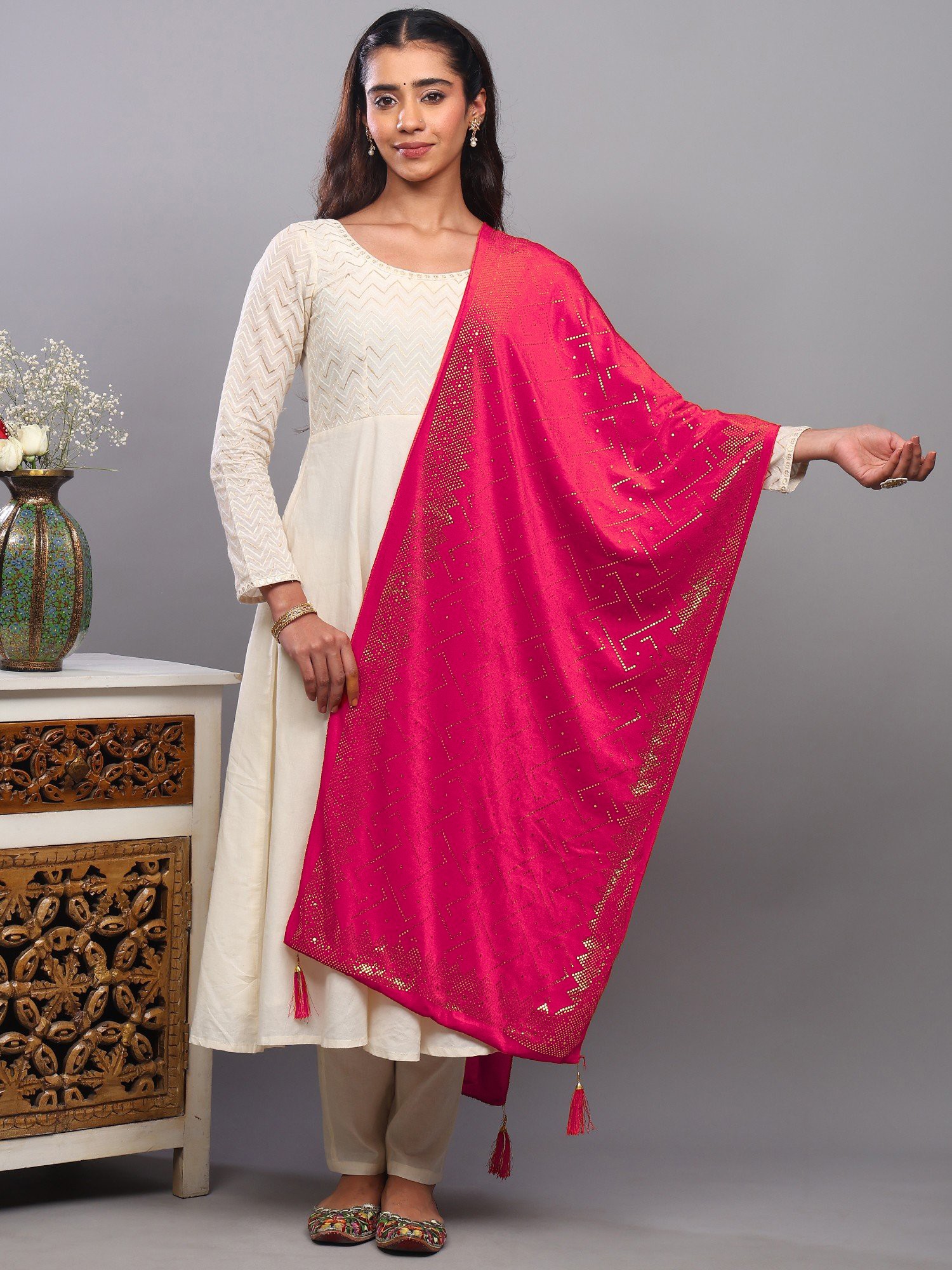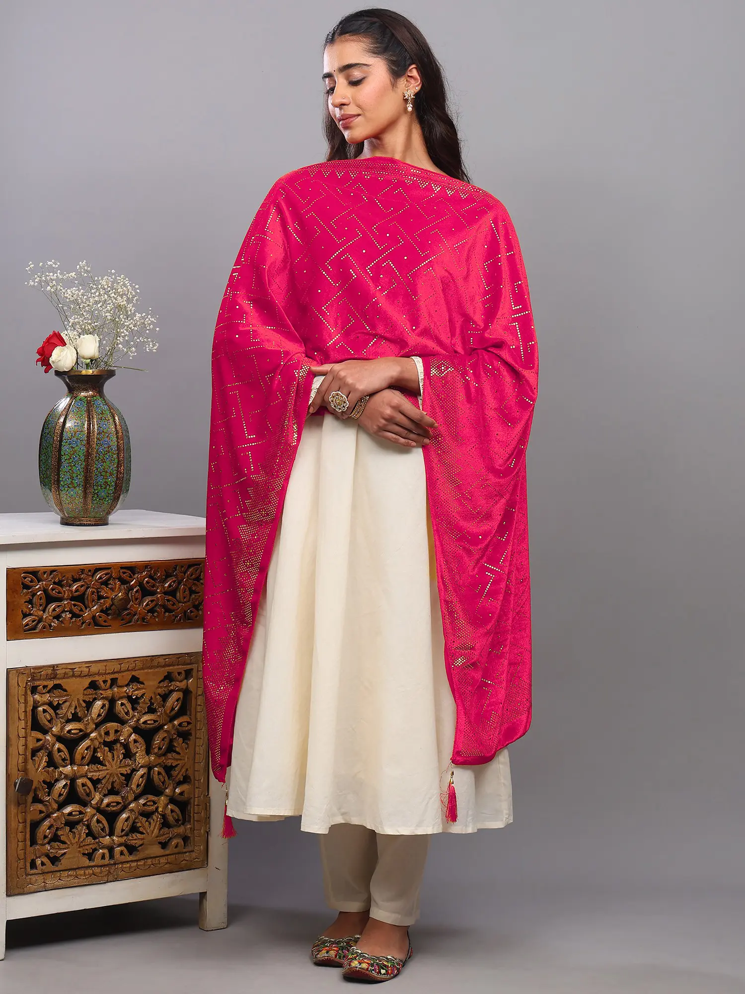 Velvet Dupatta with Zari and Sequinned Diamond Pattern and multicolored miniatures from Amritsar