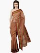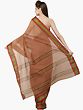 Cotton Plain Saree with Golden Border and Striped Pallu