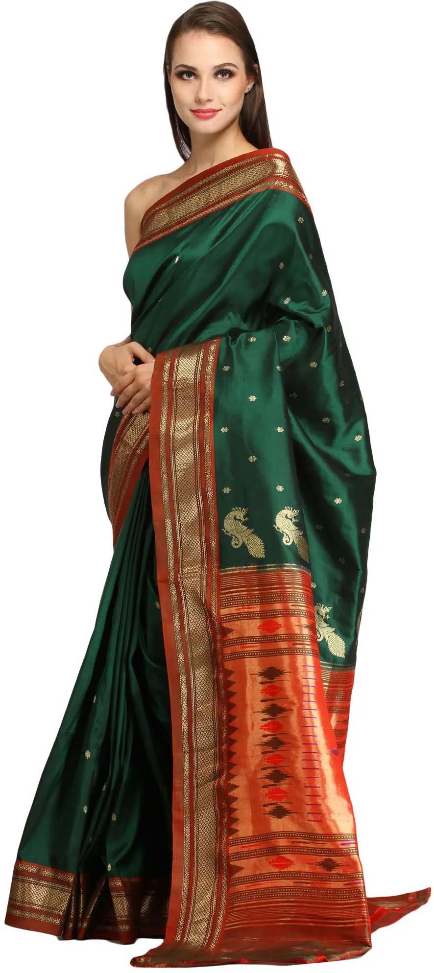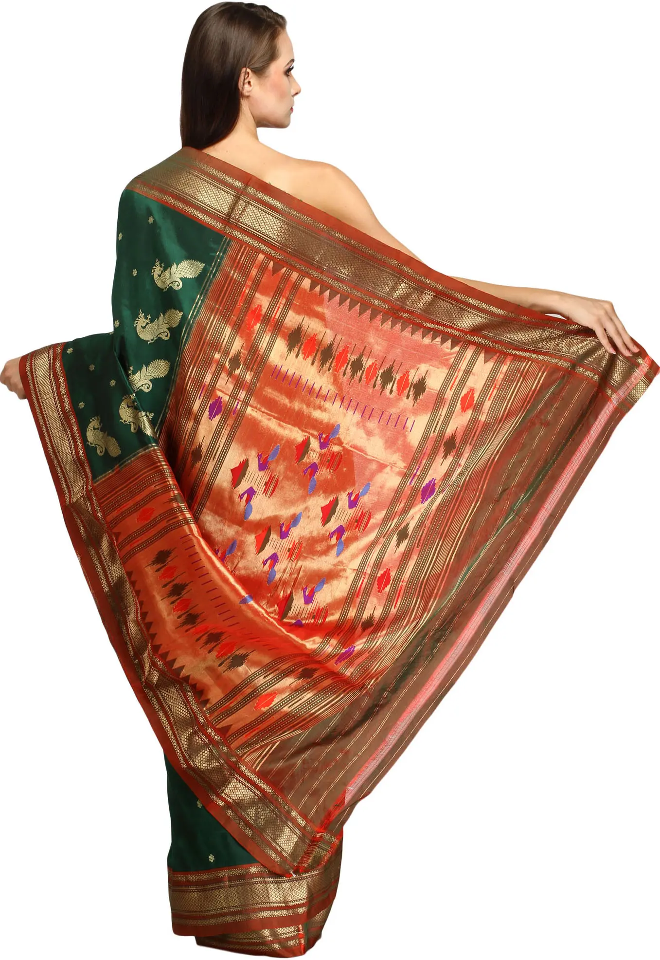 Coral-Paradise Paithani Silk Saree with Hand-Woven Peacocks on Aanchal