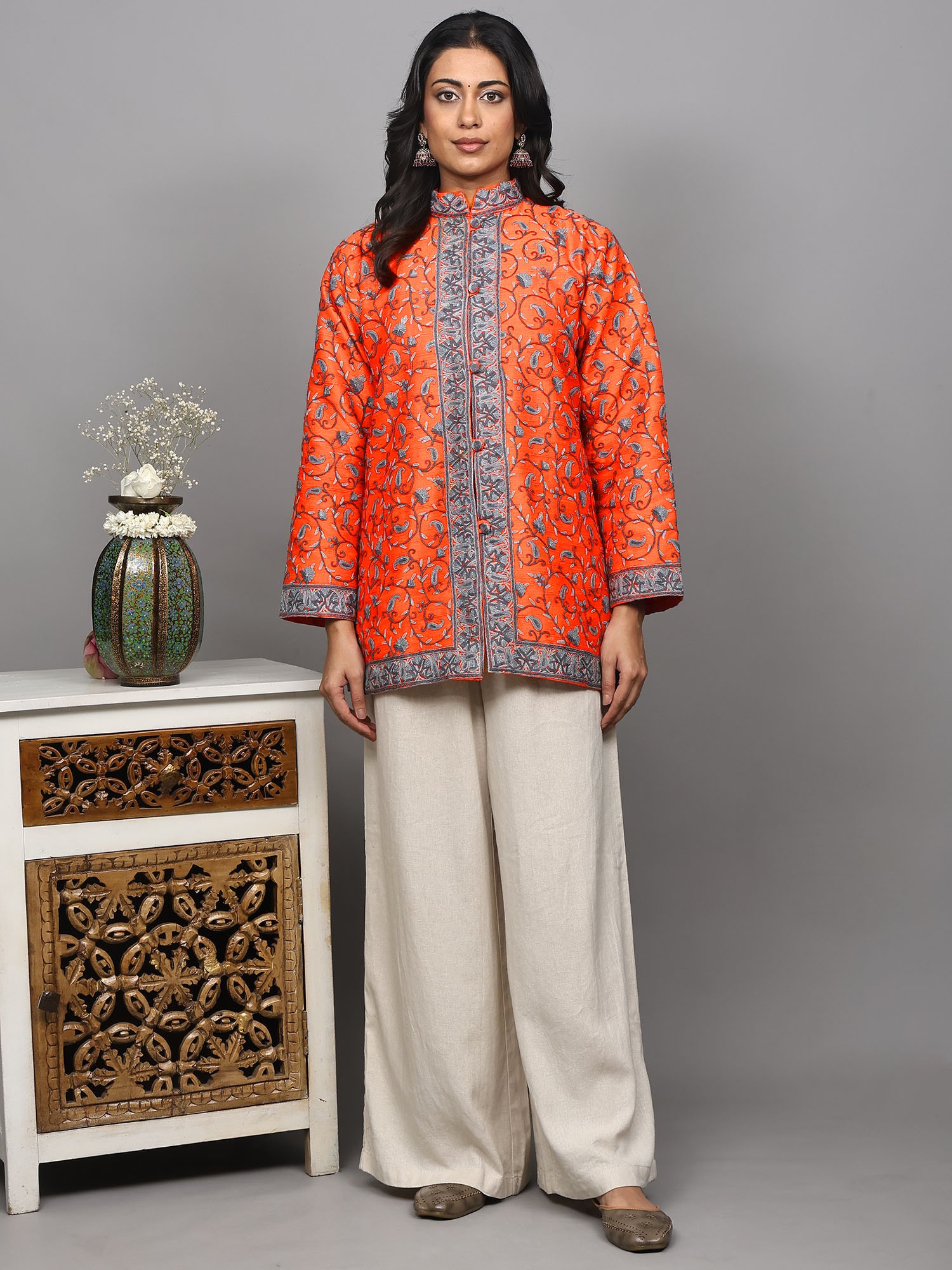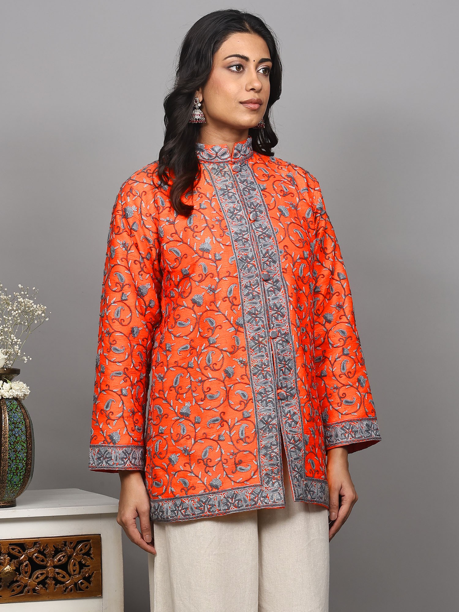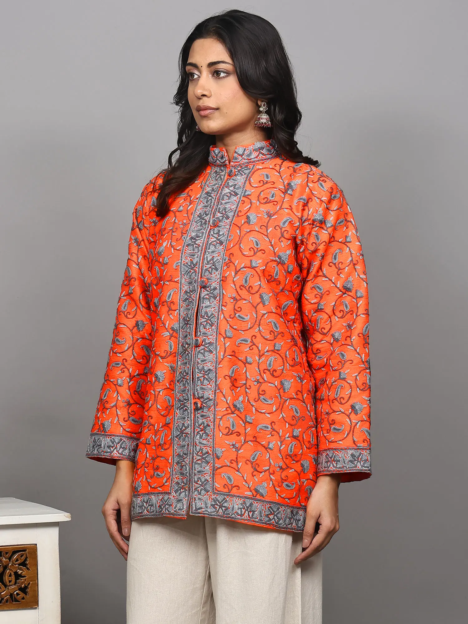 Tropical-Breeze Pure Silk Kalka Pattern Hand Aari-Embroidered Short Jacket