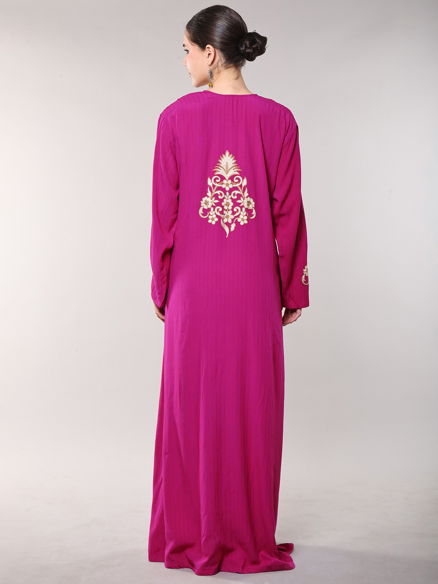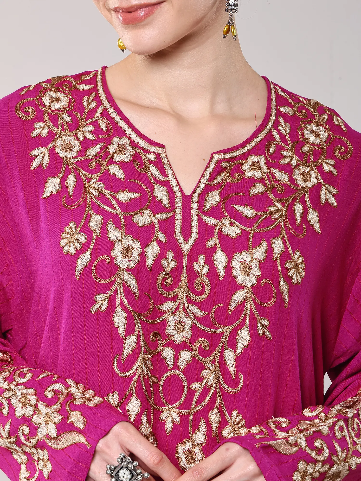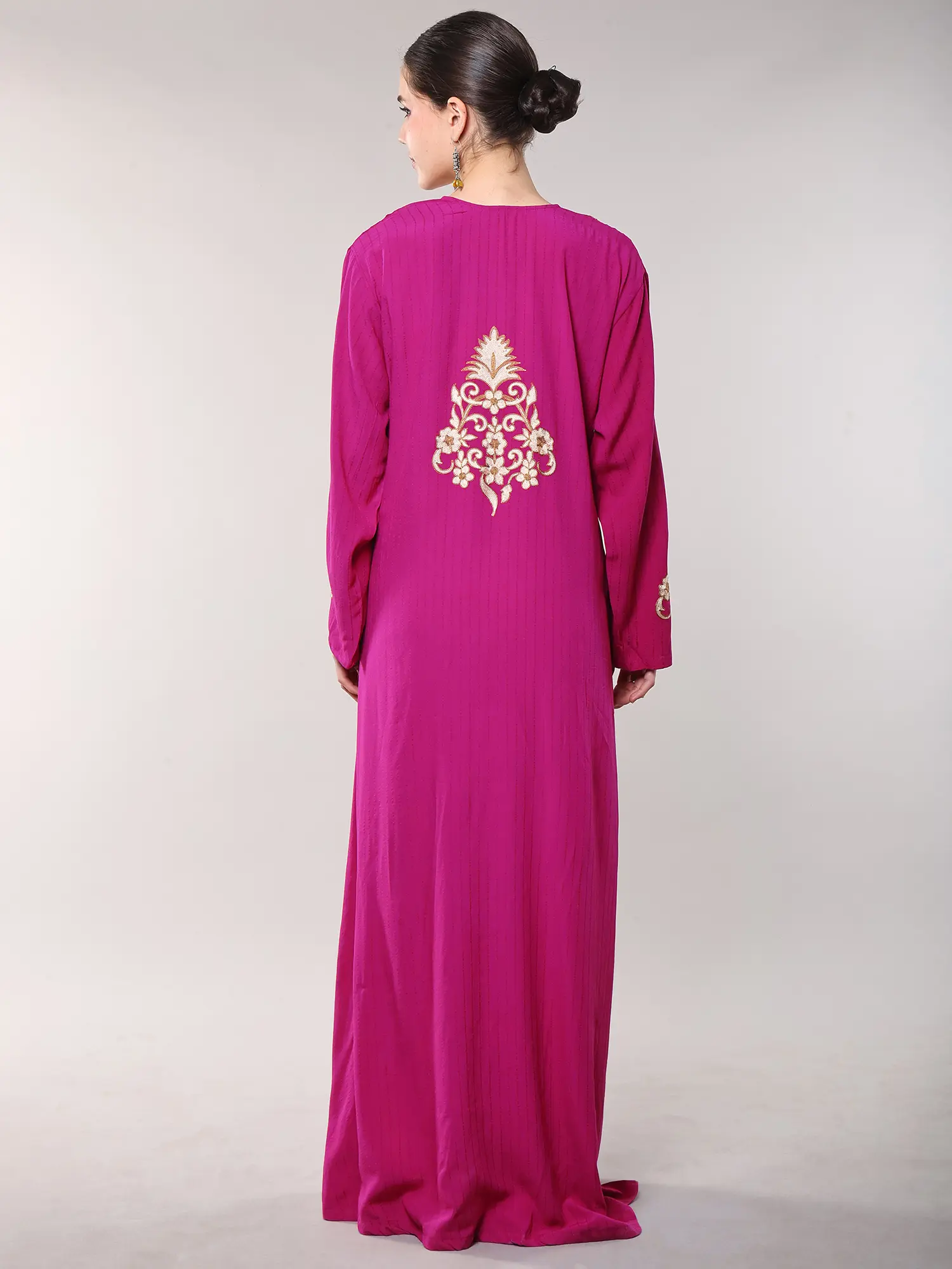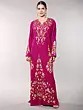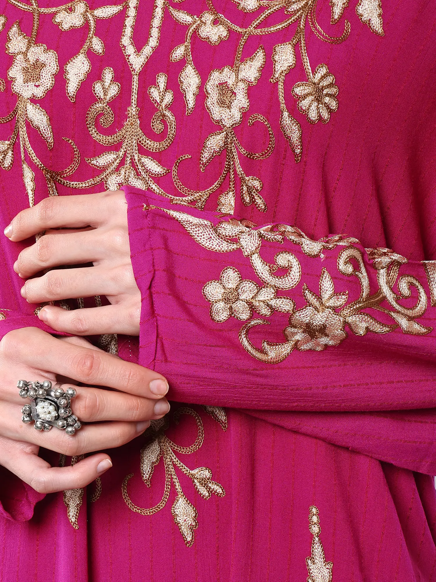 Mauve-Rose Long Gown from Kashmir with Aari Embroidered Flowers