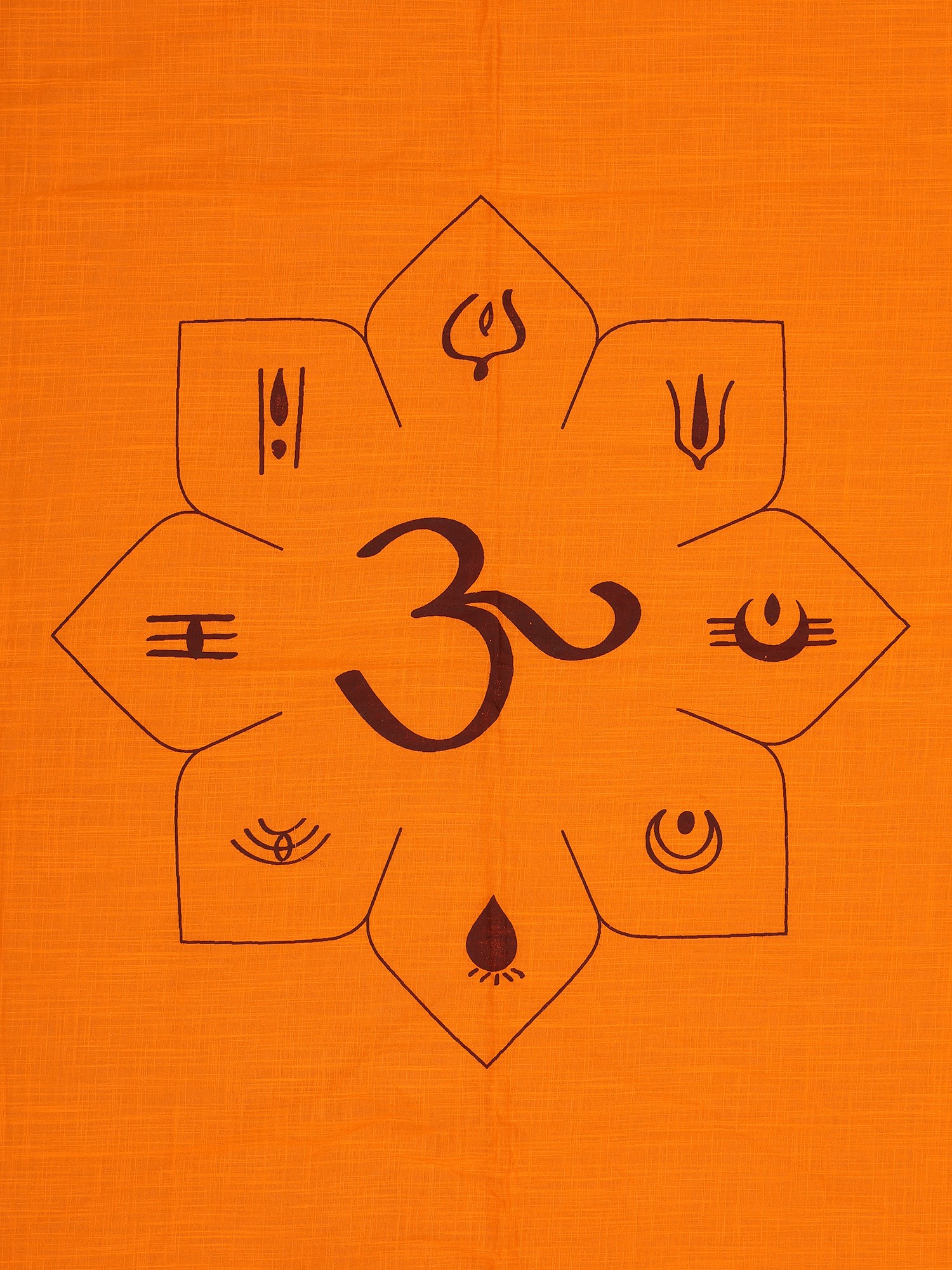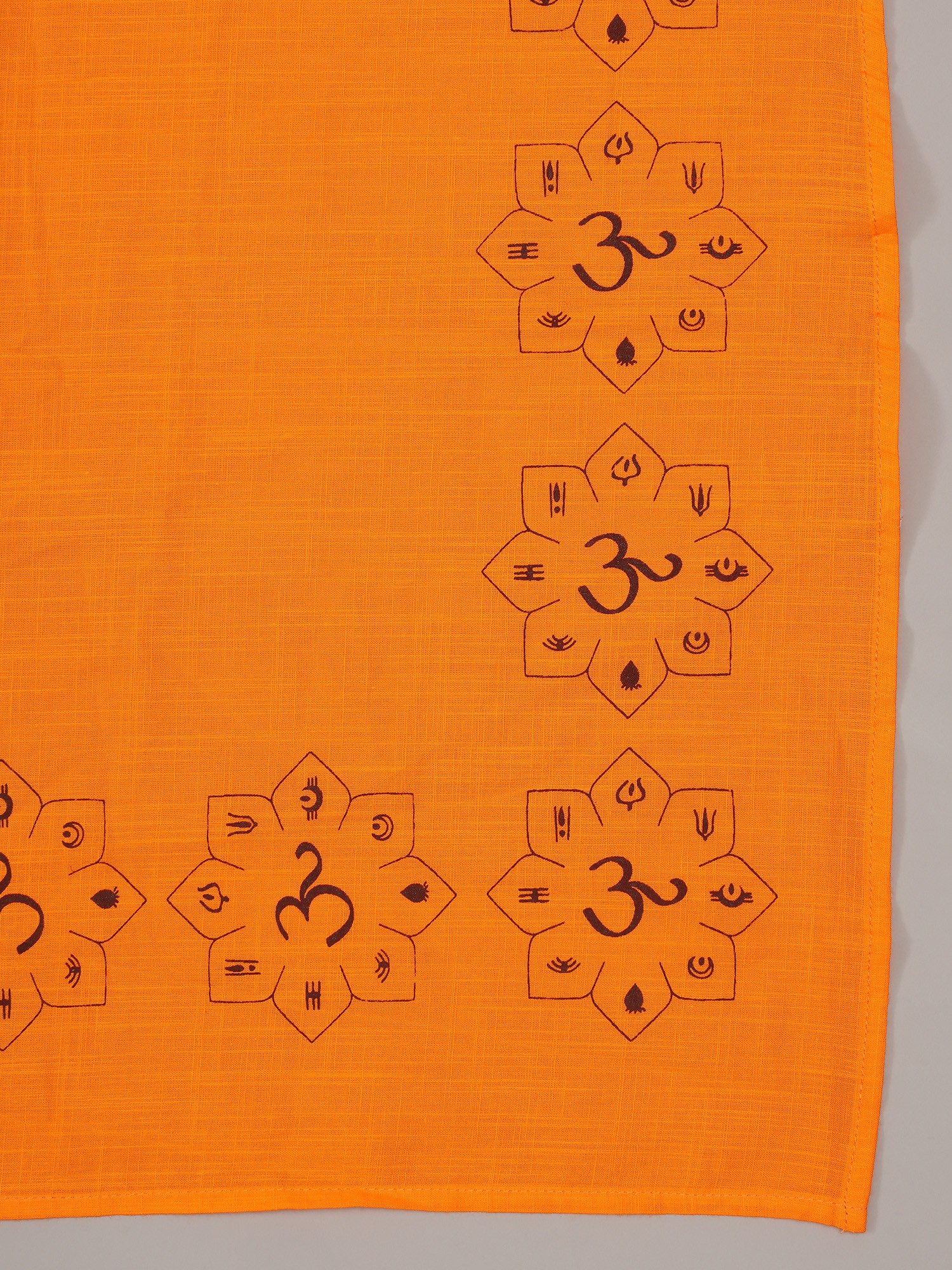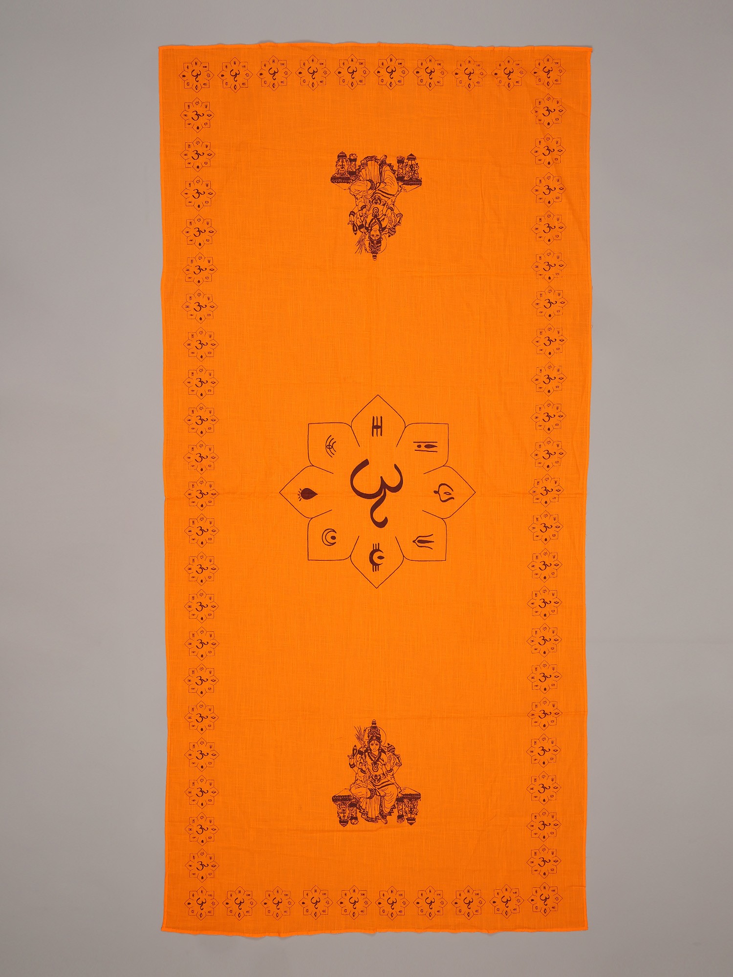 Vibrant-Orange Pure Cotton Printed Mata Lalita Tripura Sundari Prayer Dupatta with Om Symbol