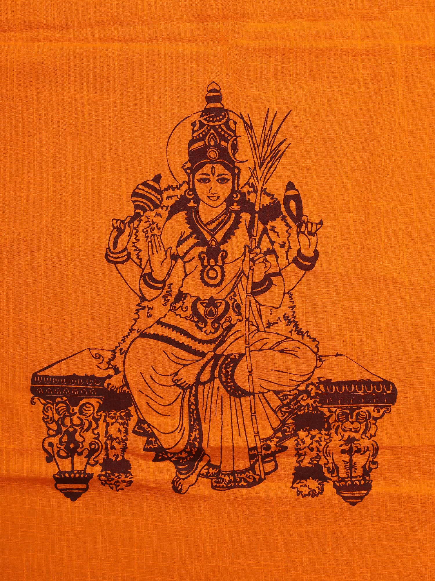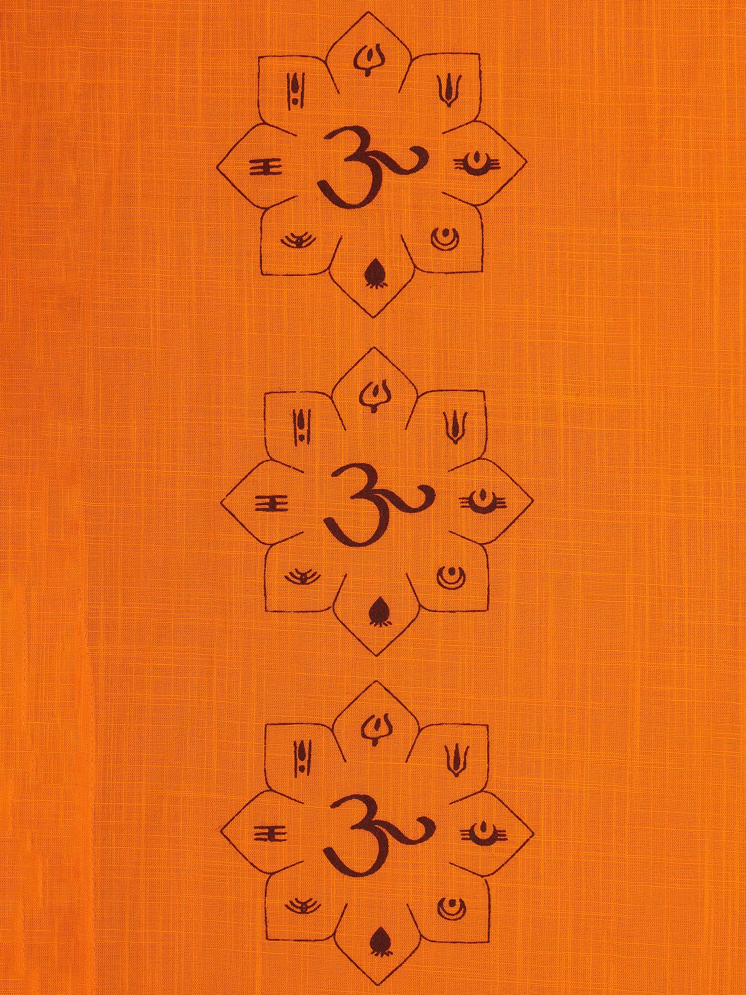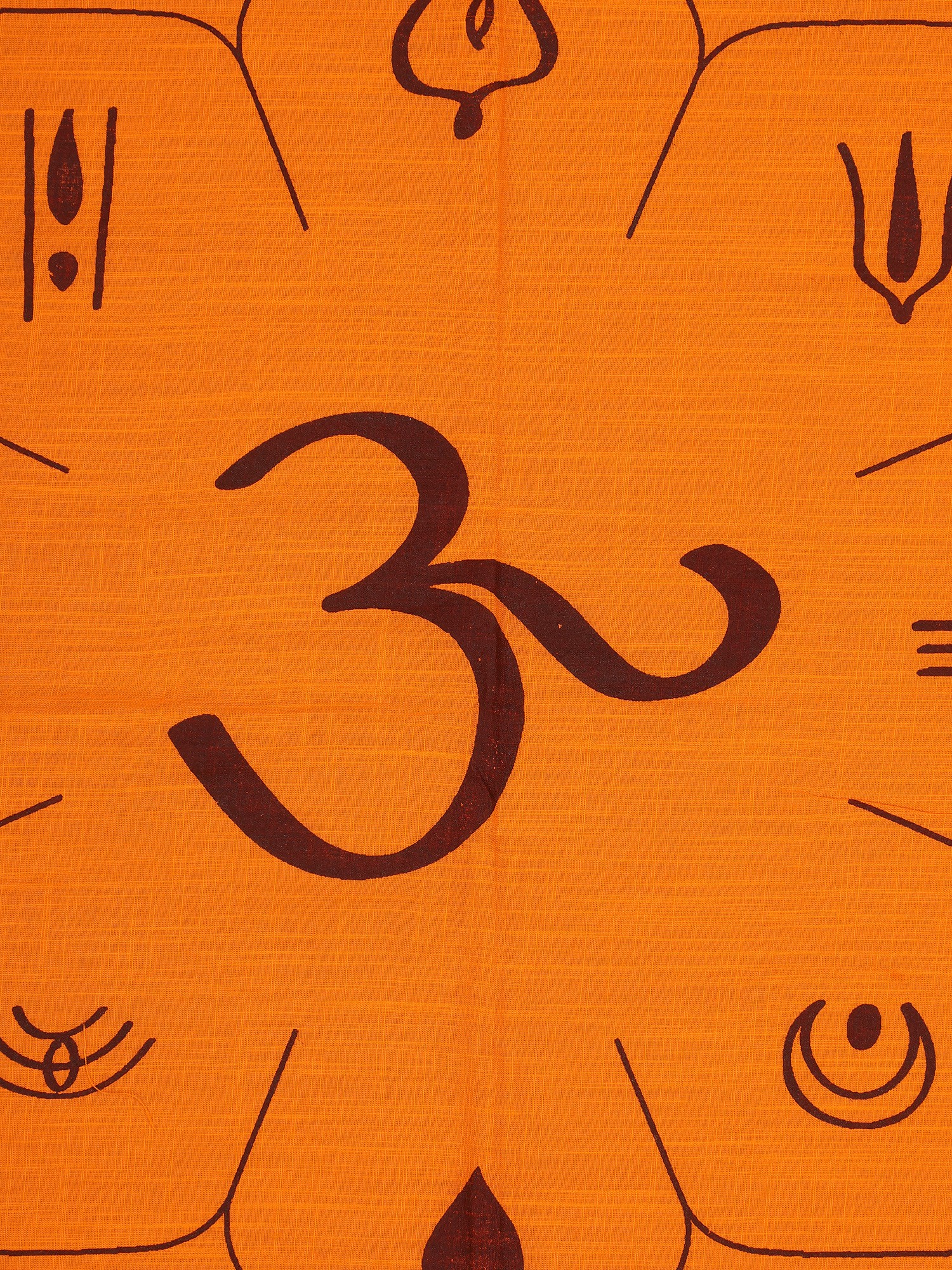 Vibrant-Orange Pure Cotton Printed Mata Lalita Tripura Sundari Prayer Dupatta with Om Symbol